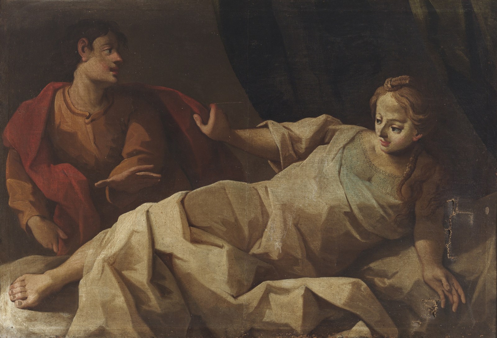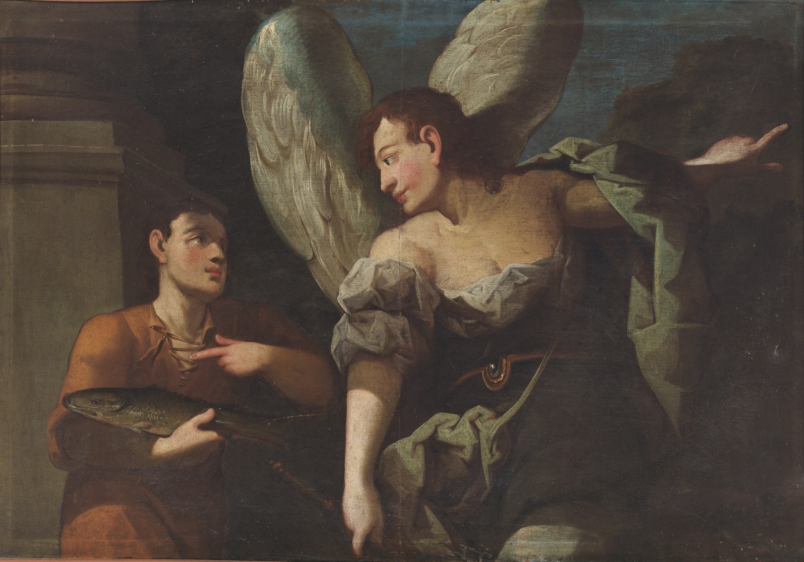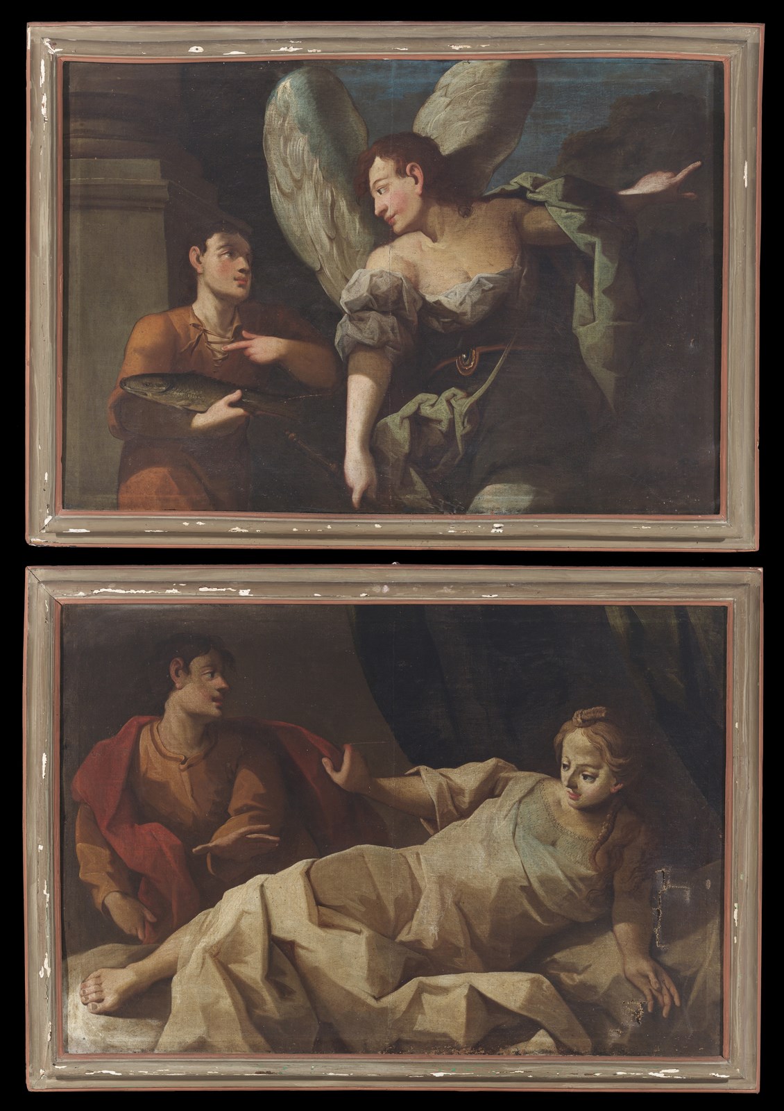 ARTISTA DEL XVIII SECOLO - Coppia di dipinti raffiguranti Tobiolo e l'angelo e Tarquinio e Lucrezia. .