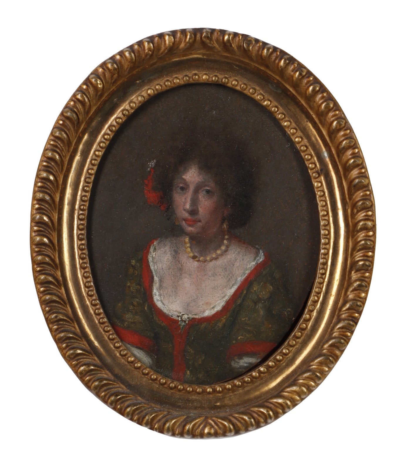 ARTISTA DEL XVII SECOLO Coppia di ritratti raffiguranti gentiluomo e gentildonna. Olio su rame. Cm 6,00 x 7,50. . Cornice presente