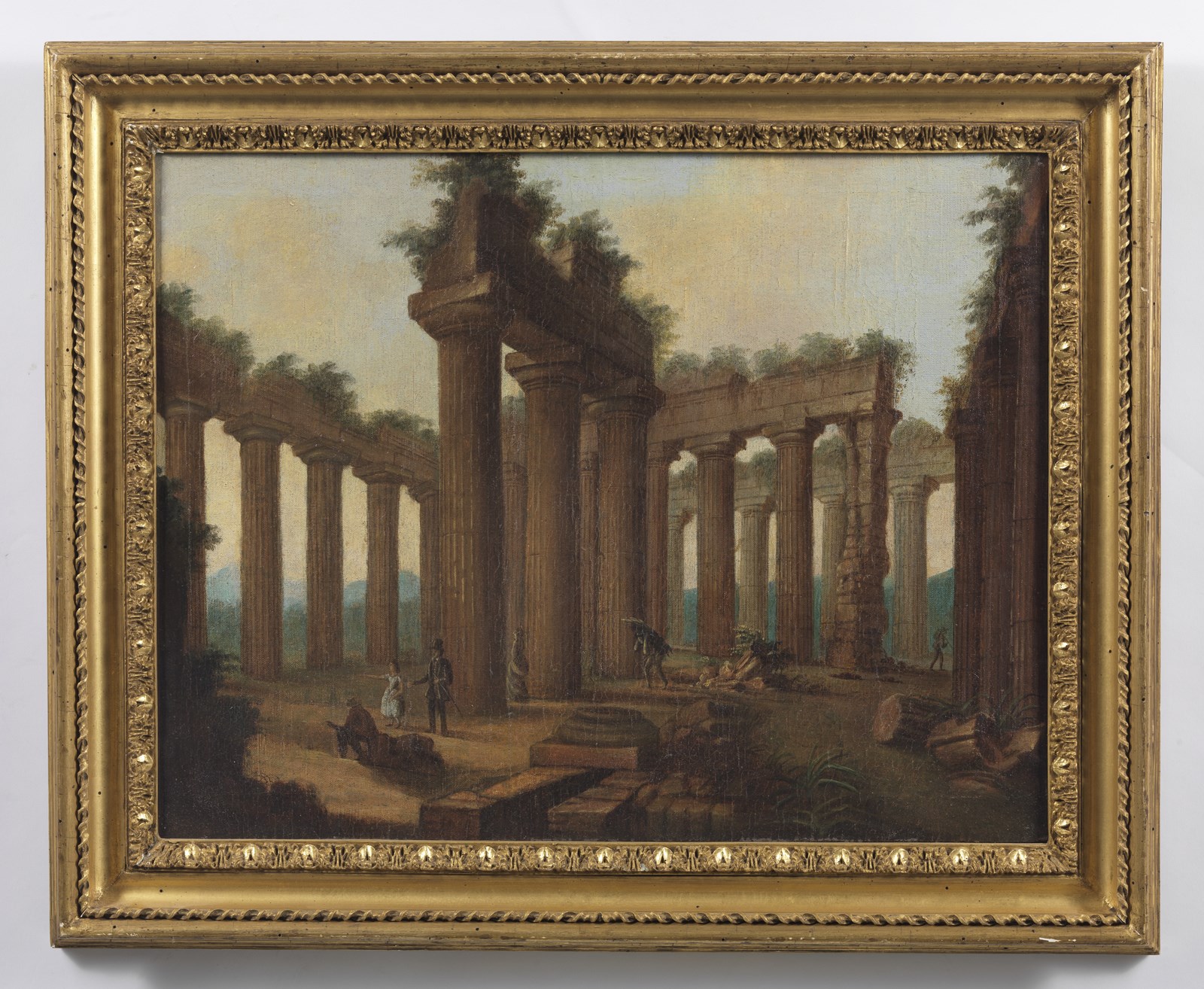 ARTISTA DEL XVIII-XIX SECOLO Il tempio di Nettuno a Paestum. . Olio su tela . Cm 52,50 x 40,00. . Cornice presente