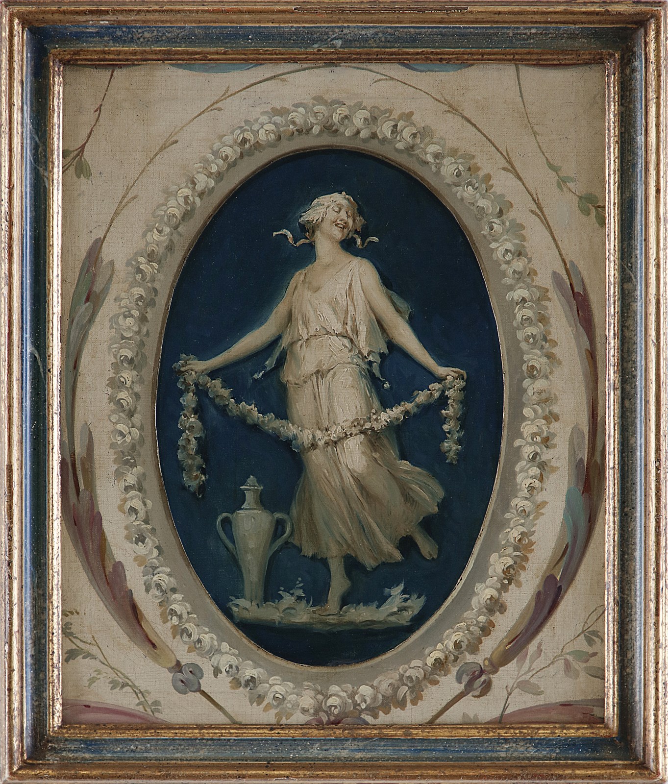 ARTISTA DEL XIX SECOLO Allegoria. Olio su tela incollata su tavola. Cm 32,00 x 39,50. . Cornice presente