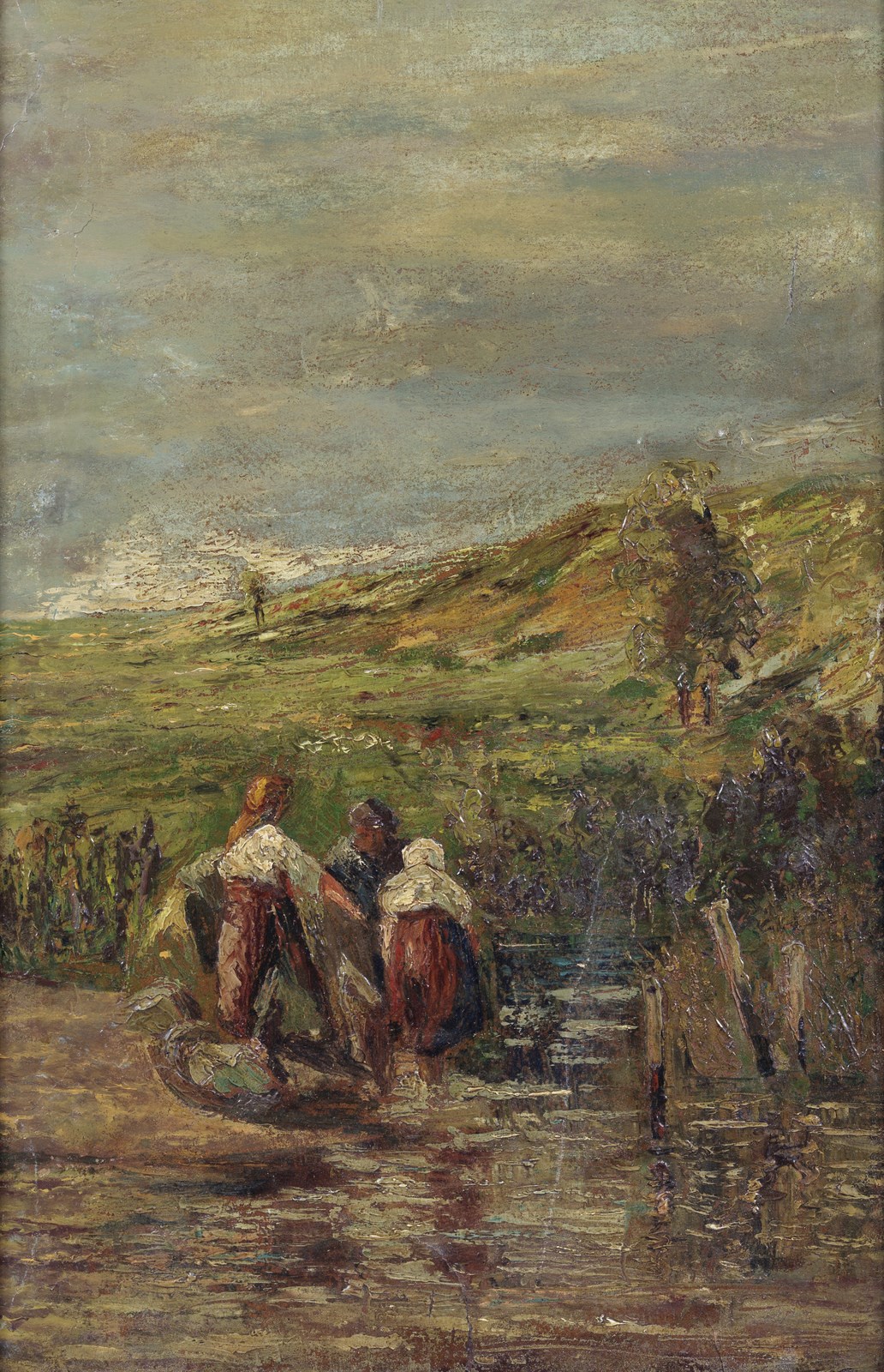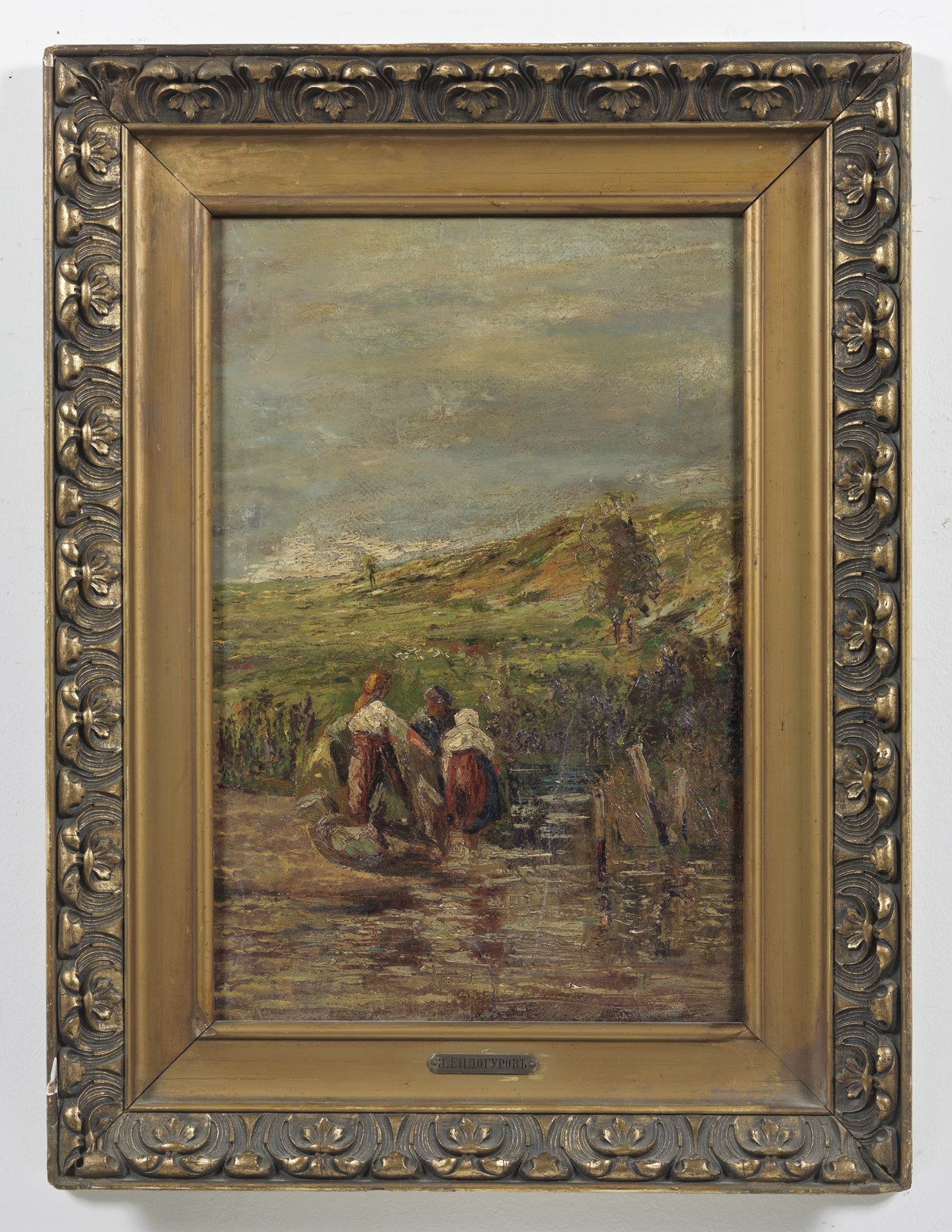 ENDOGUROV IVAN IVANOVICH (1861 - 1898) Paesaggio con contadine. . Olio su tavoletta. Cm 33,50 x 50,50. . Cornice presente