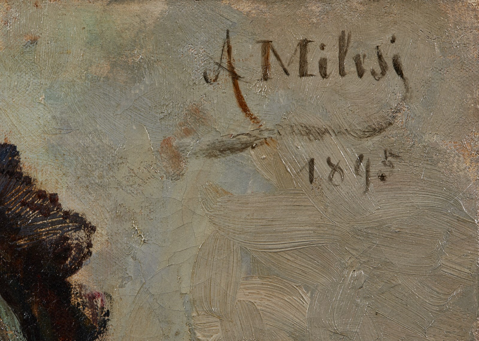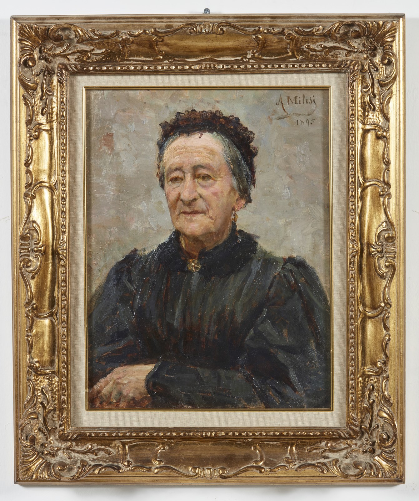 MILESI ALESSANDRO (1856 - 1945) Ritratto di anziana. Olio su tela . Cm 32,50 x 42,50. Firmato e datato 1895 in alto a destra.