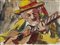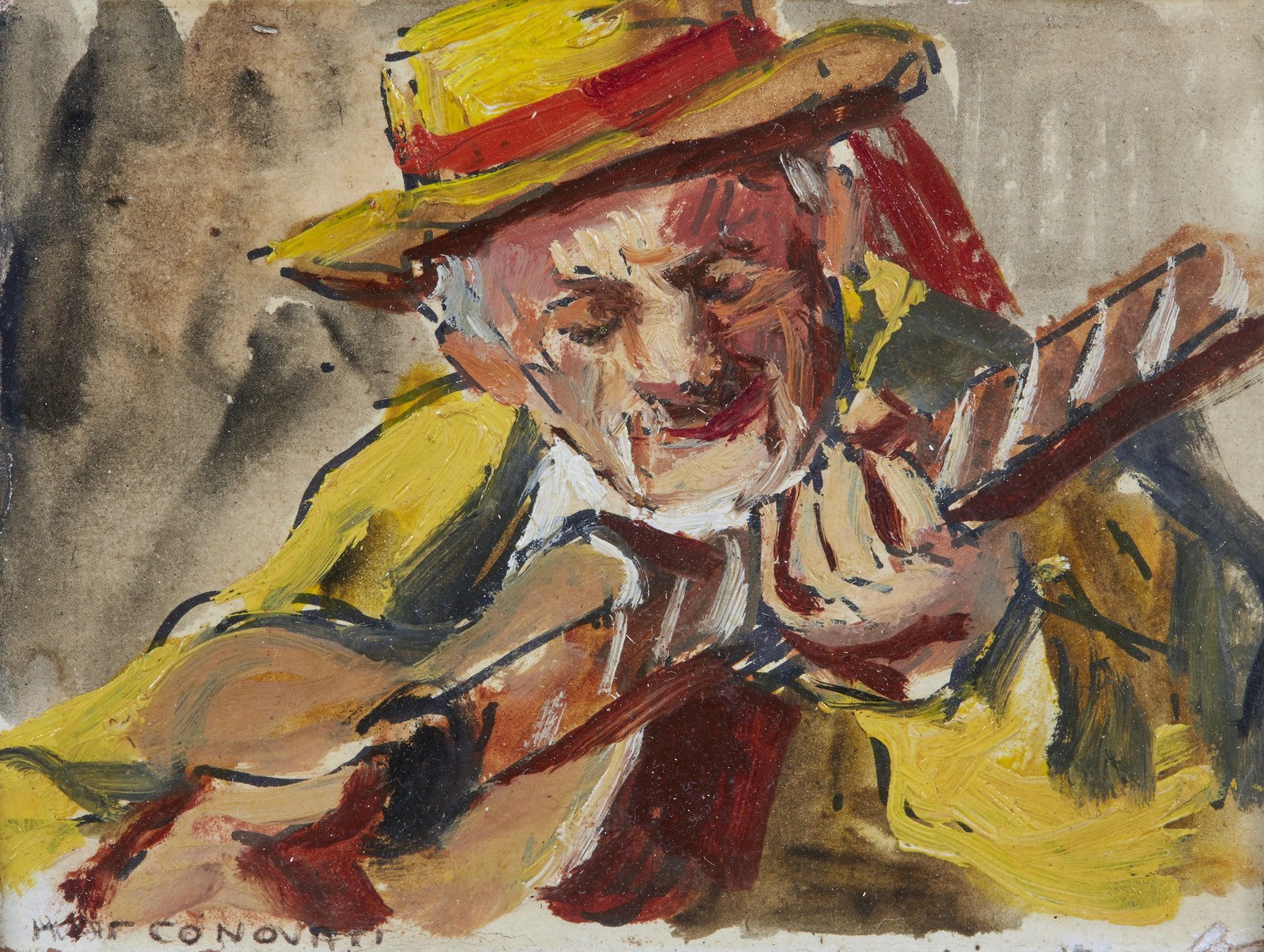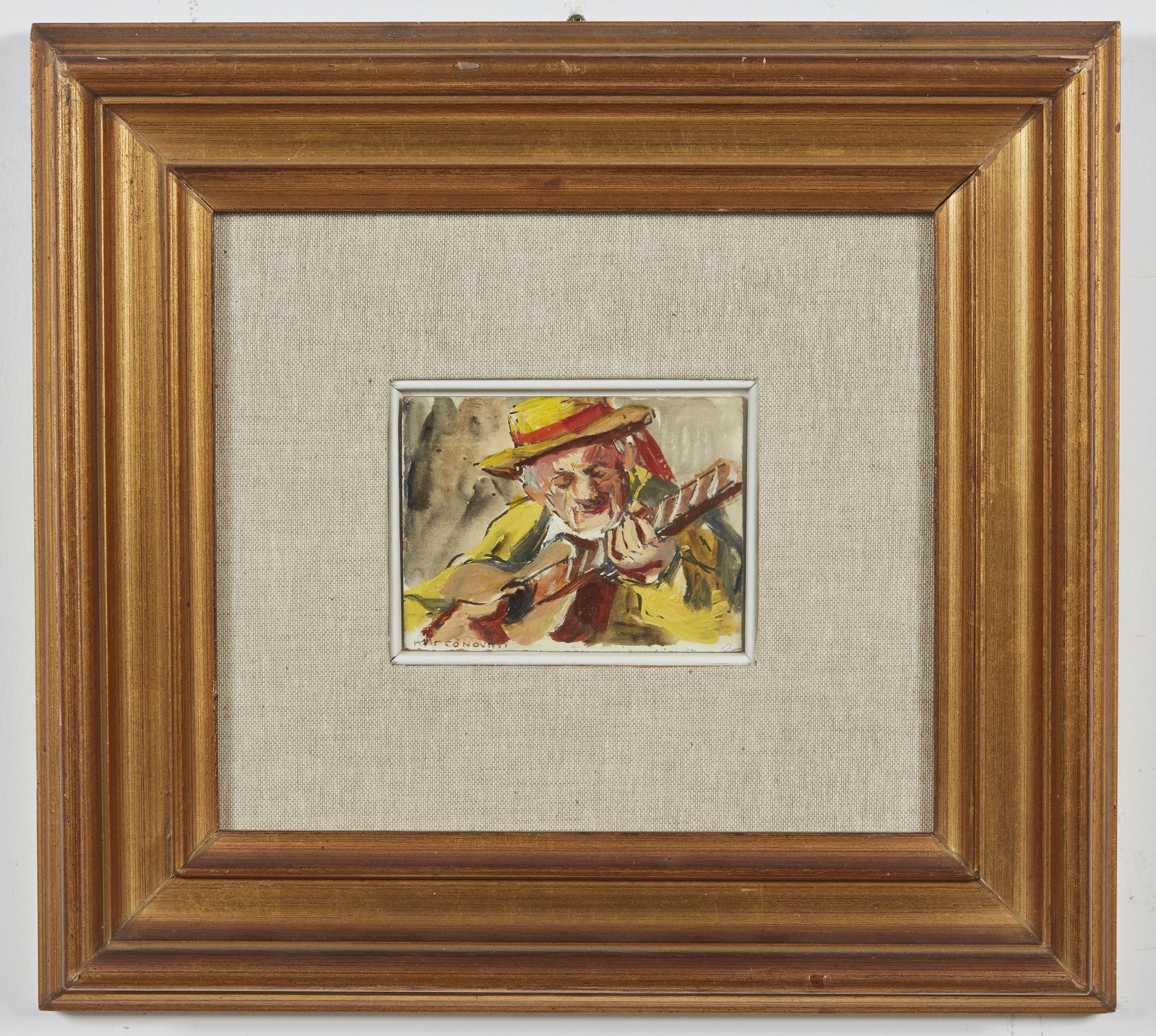 NOVATI MARCO (1895 - 1975) Suonatore di chitarra. Olio su tavola. Cm 13,00 x 10,00. Firmato in basso a sinistra. Cornice presente