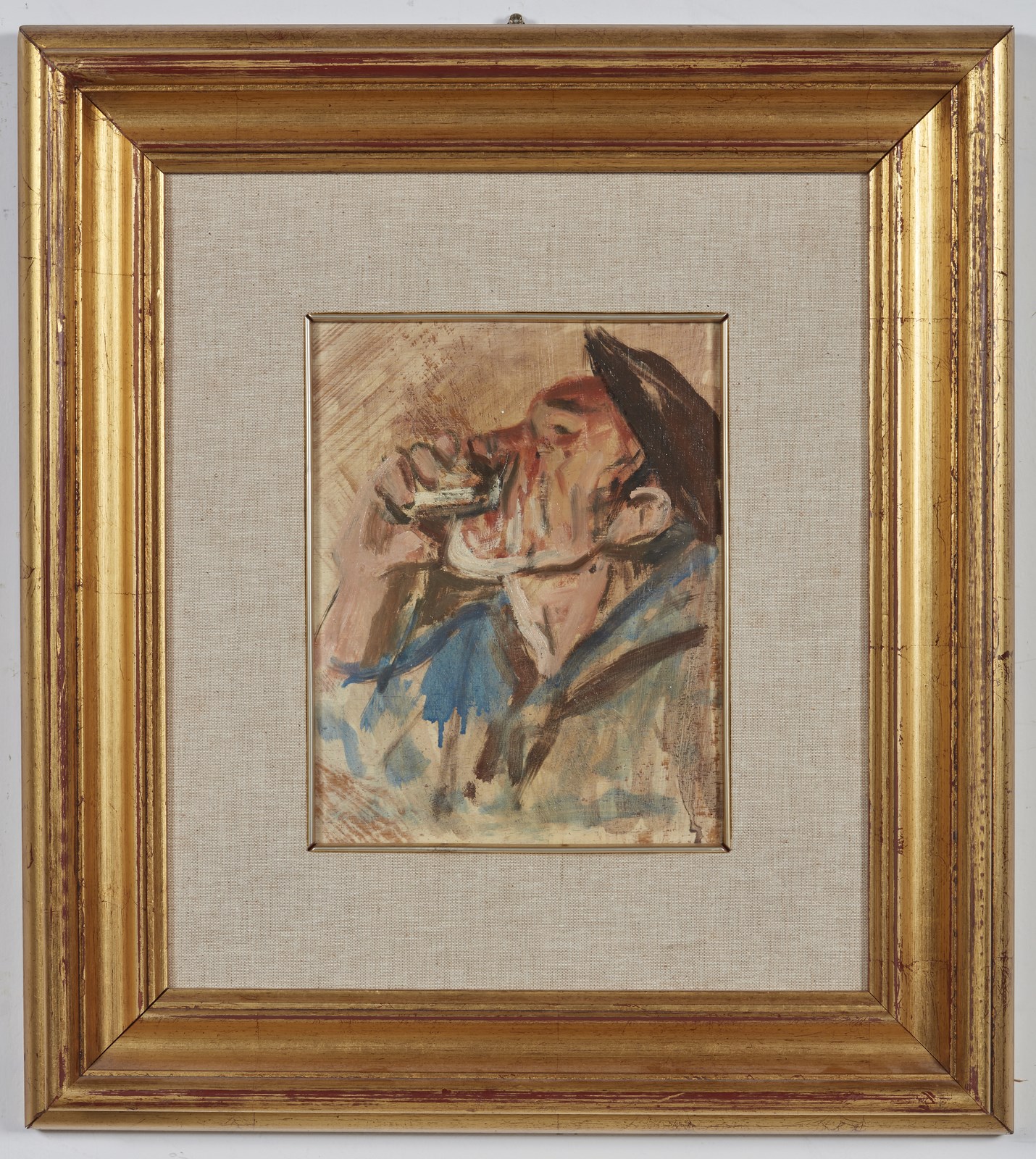 NOVATI MARCO (1895 - 1975) Bevitore. Olio su tavola. Cm 18,50 x 24,50. Al retro intitolato e firmato. Cornice presente
