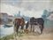 CHERUBINI CARLO (1897 - 1978) - Gruppo di cinque dipinti raffiguranti nudo di donna; paesaggio fluviale; canale veneziano; paesaggio con cavalli; cavallerizzo. .