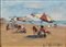 CHERUBINI CARLO (1897 - 1978) - Gruppo di cinque dipinti raffiguranti paesaggio con contadine; paesaggio con figura femminile; paesaggio marino; scorcio veneziano; veduta dell'isola di San Giorgio.