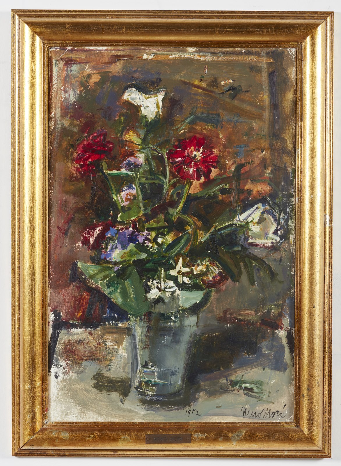 MORI NENO (1899 - 1968) Natura morta di fiori. Olio su tela . Cm 40,00 x 58,00. Firmato in basso a destra e datato 1952 in basso al centro.
