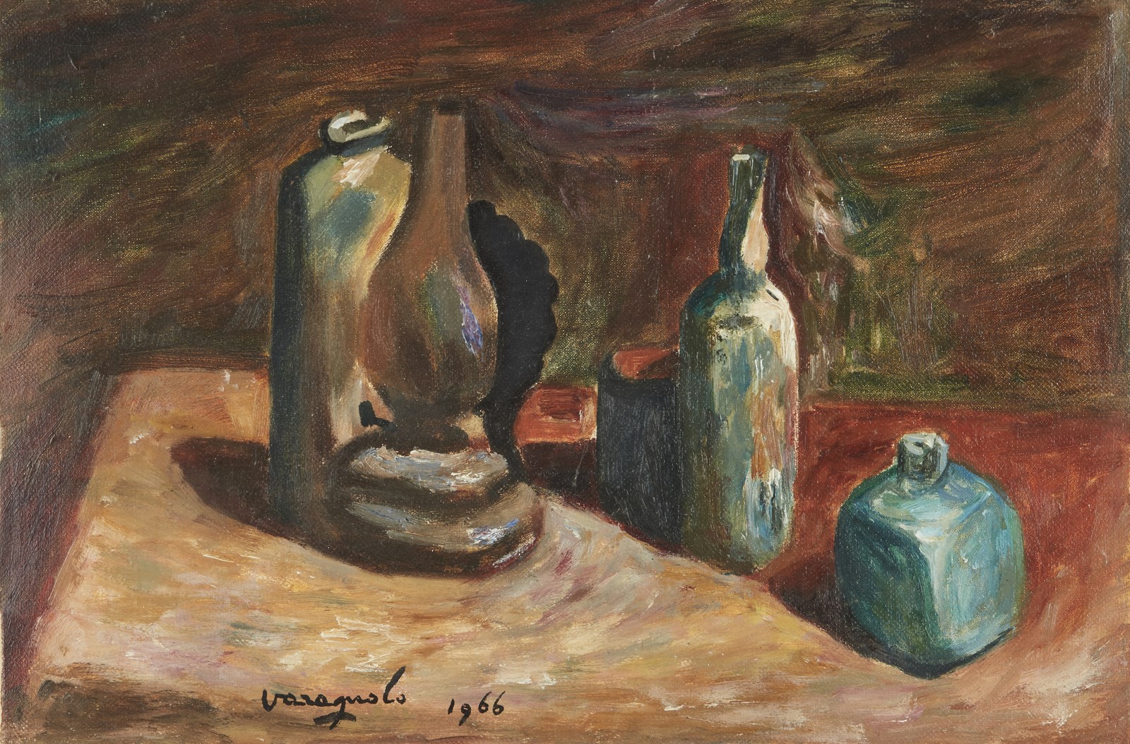 VARAGNOLO MARIO (1901 - 1971) Natura morta. . Olio su tela . Cm 30,00 x 20,00. Firmato e datato 1966 in basso a destra. . Cornice presente