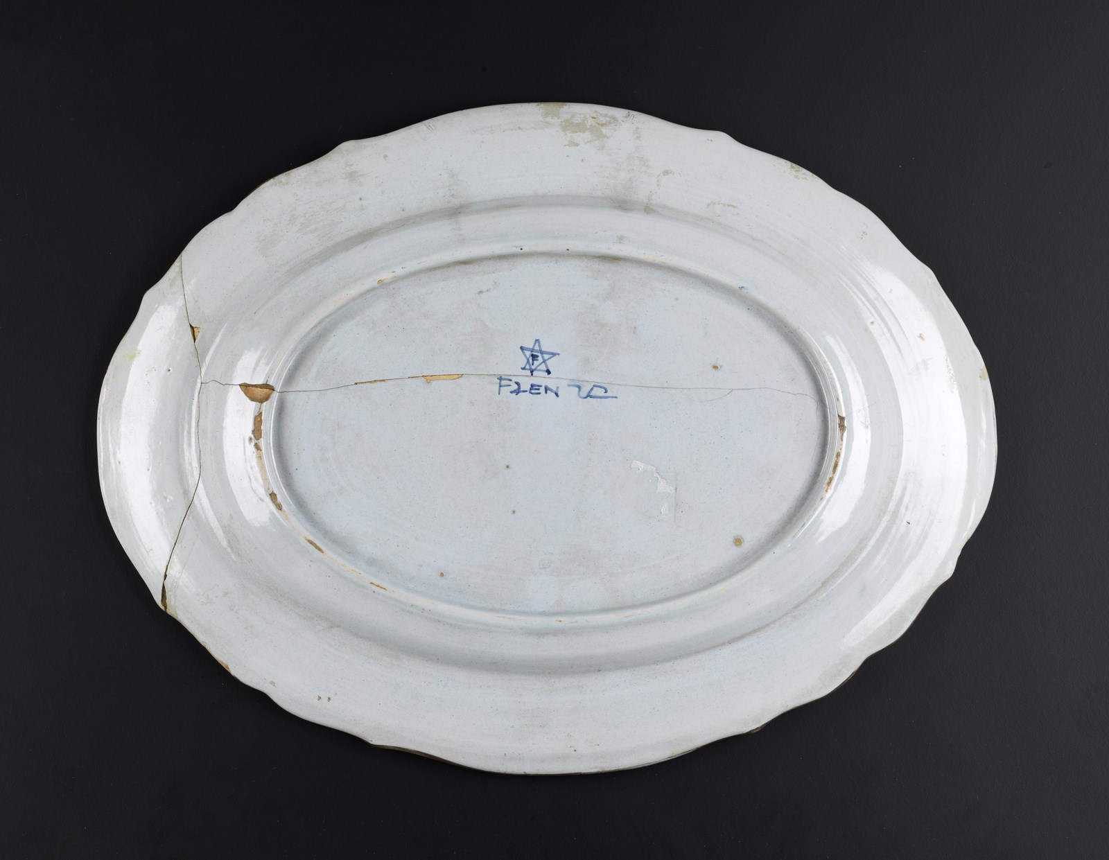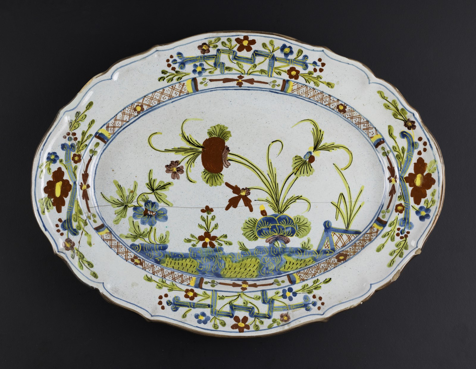 MANIFATTURA DI FAENZA Piatto in ceramica con decorazioni floreali. . Cm 37,00 x 27,50. Marchio al retro. Felatura.