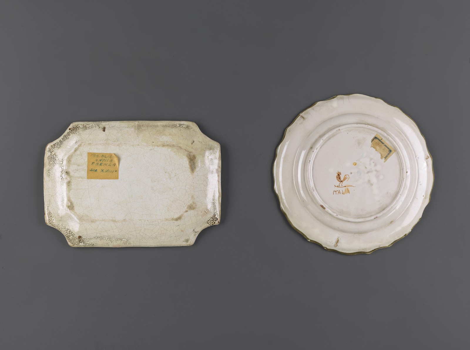 MANIFATTURA DI FAENZA - Coppia di piatti in maiolica con decorazioni floreali.