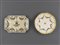 MANIFATTURA DI FAENZA Coppia di piatti in maiolica con decorazioni floreali. . Cm 21,50. 17x23,5 cm.