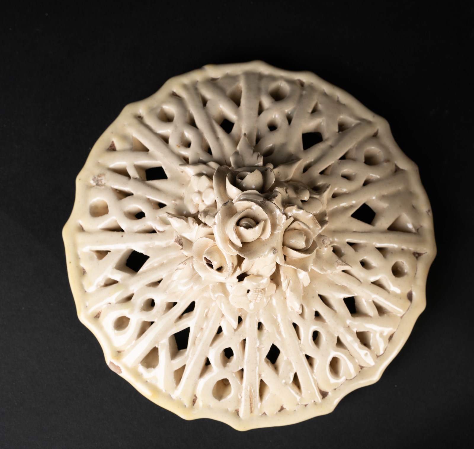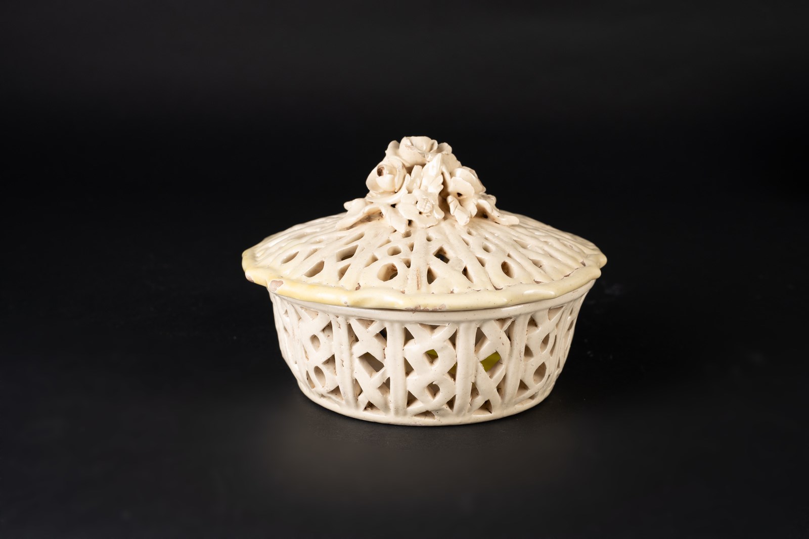 MANIFATTURA VENETA DEL XIX SECOLO Contenitore e piatto in terraglia. . Cm 24,00 x 29,00. Marchiato Contiero.