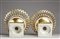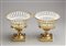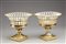 MANIFATTURA DEL XIX SECOLO Coppia di fruttiere in porcellana smaltata e parzialmente dorata poggianti su base quadrata. . Cm 22,50 x 22,50.