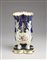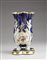 MANIFATTURA DEL XIX SECOLO - Vaso smaltato in porcellana parzialmente dorata e dipinta nei toni del blu e a decori floreali, poggiante su quattro piedini.