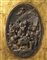 ARTISTA DELL'ITALIA SETTENTRIONALE DEL XVIII SECOLO Pannello ovale in legno intagliato a bassorilievo raffigurante Sacra famiglia con l'adorazione dei pastori. . Cm 15,00 x 22,00. Restauri.