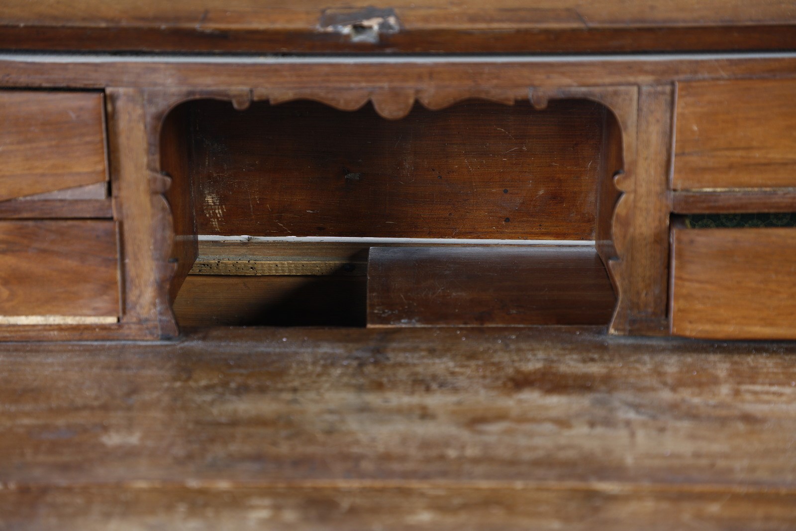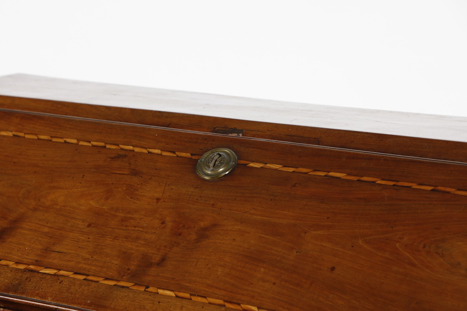MANIFATTURA LOMBARDA DEL XIX SECOLO - Cassettone a ribalta in noce, due cassetti sul fronte, gambe a piramide rovesciata.