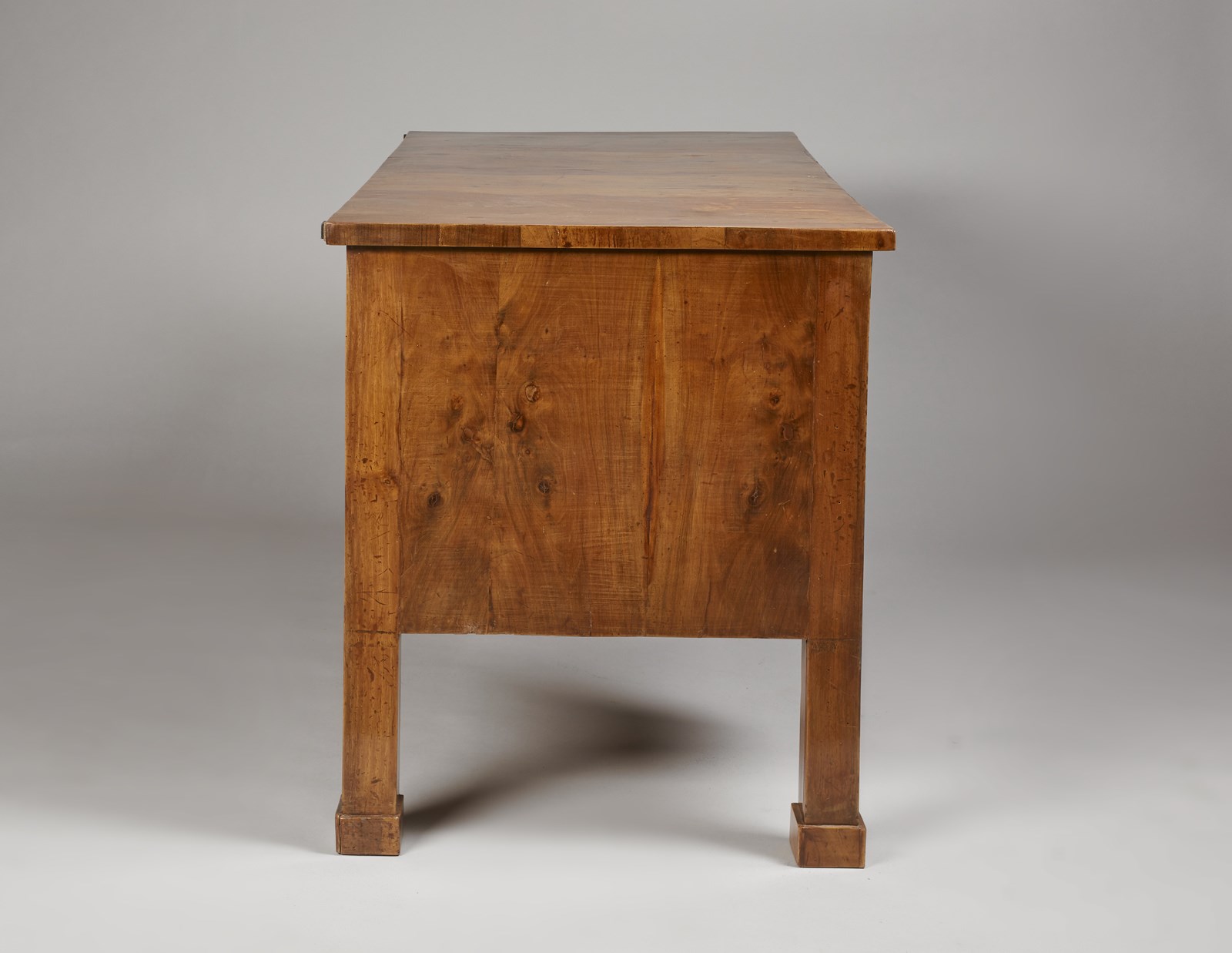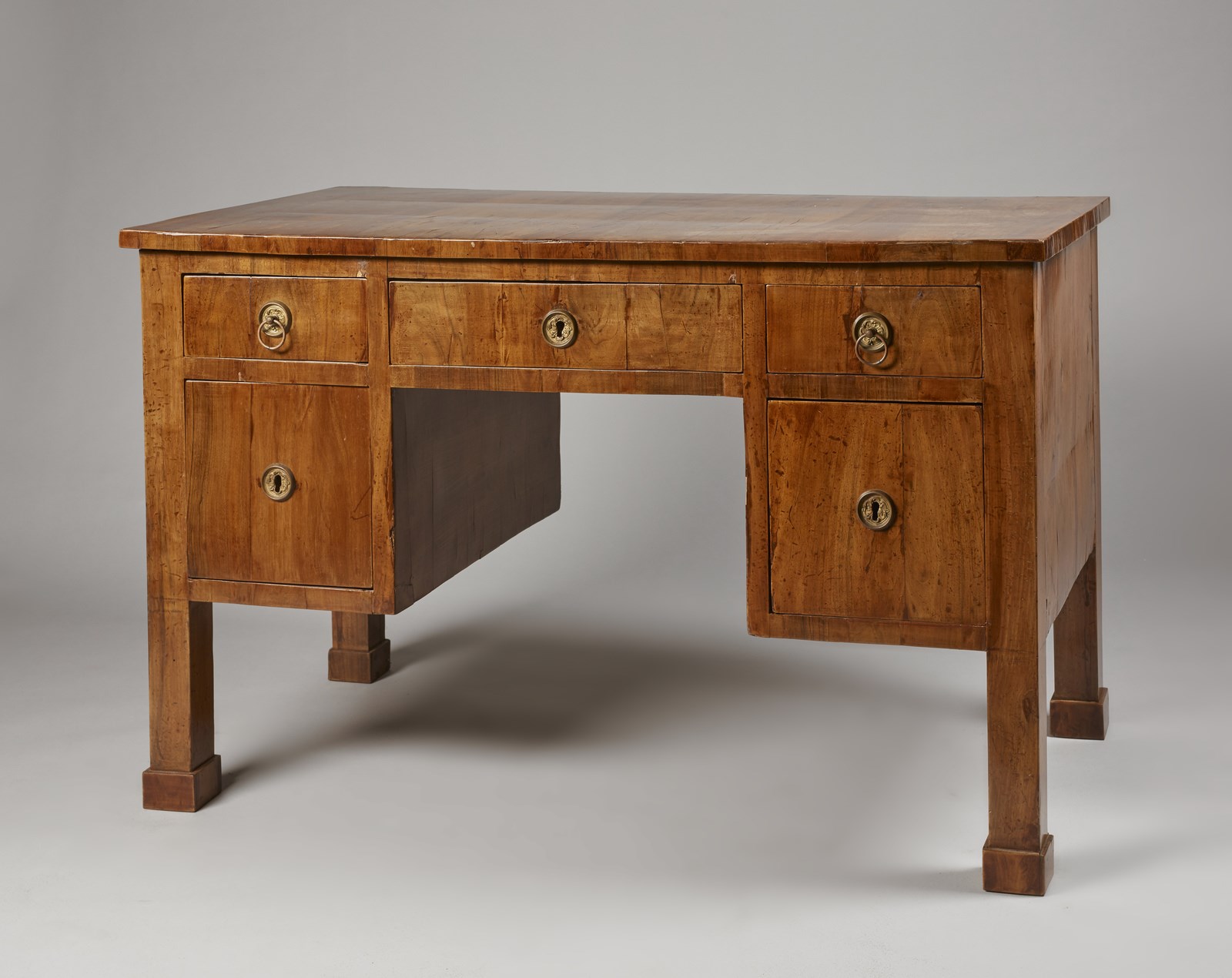MANIFATTURA DELL'ITALIA SETTENTRIONALE, SECOLO XIX Scrittoio lastronato in noce a cinque cassetti sul fronte, piedi a pilastro. . Cm 126,00 x 77,00 x 64,50.