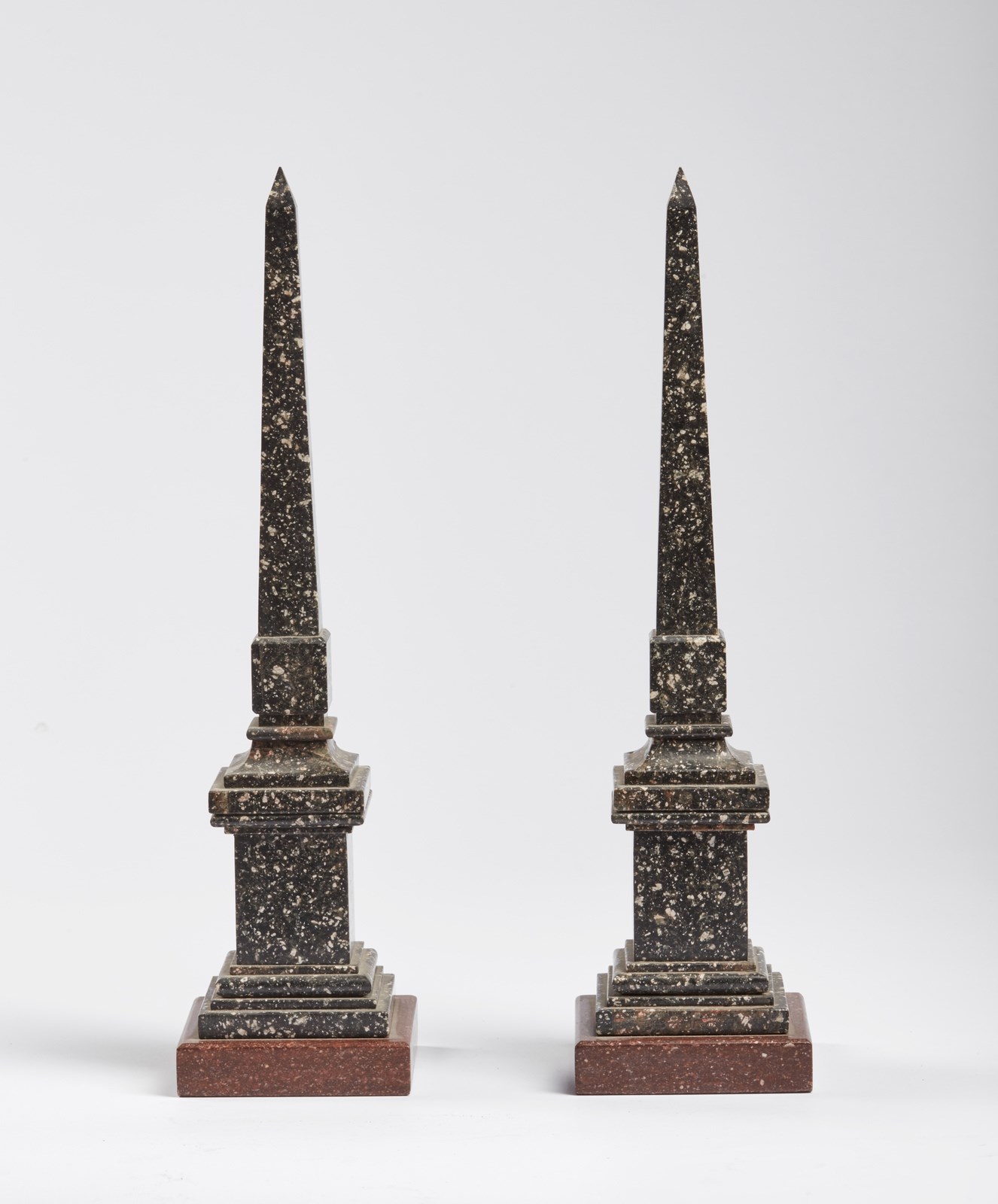 MANIFATTURA DEL XX SECOLO - Coppia di obelischi in porfido nero.