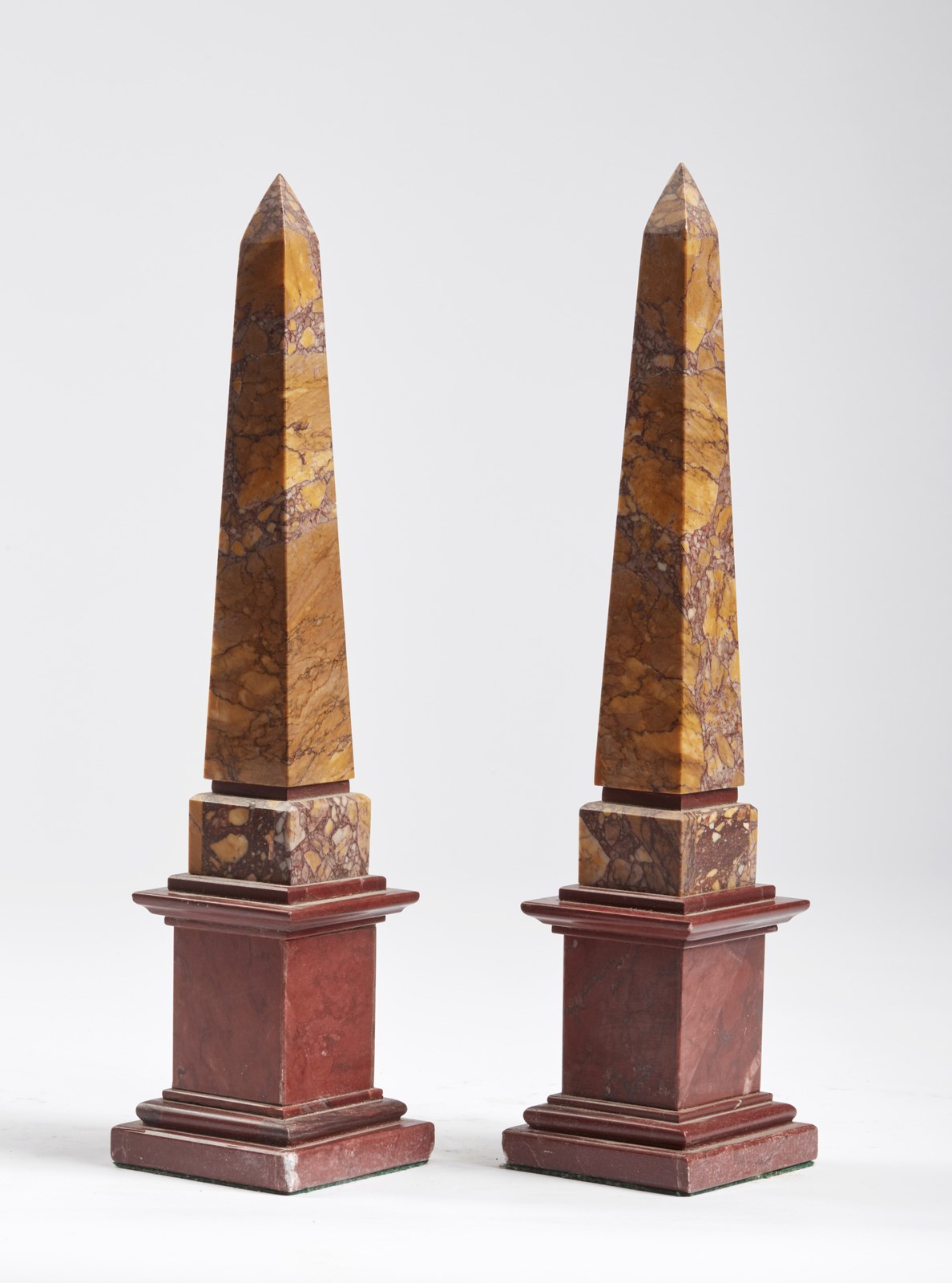 MANIFATTURA DEL XX SECOLO - Coppia di obelischi in marmo broccatello di Siena.