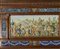 MANIFATTURA MOLARONI DEL XX SECOLO Pannello in maiolica dipinta con i Trionfi di Cesare dal modello di Andrea Mantegna e cornice in legno scolpito. . Cm 350,00 x 108,00 x 24,00.
