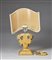MANIFATTURA DEL XVIII SECOLO Portapalma in rame argentato adattato a lume, su base in legno. . Cm 15,00 x 26,00.