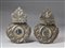 MANIFATTURA DEL XIX SECOLO - Coppia di cornici in rame argentato su legno contenenti medaglie, con decorazioni floreali e fitomorfe.