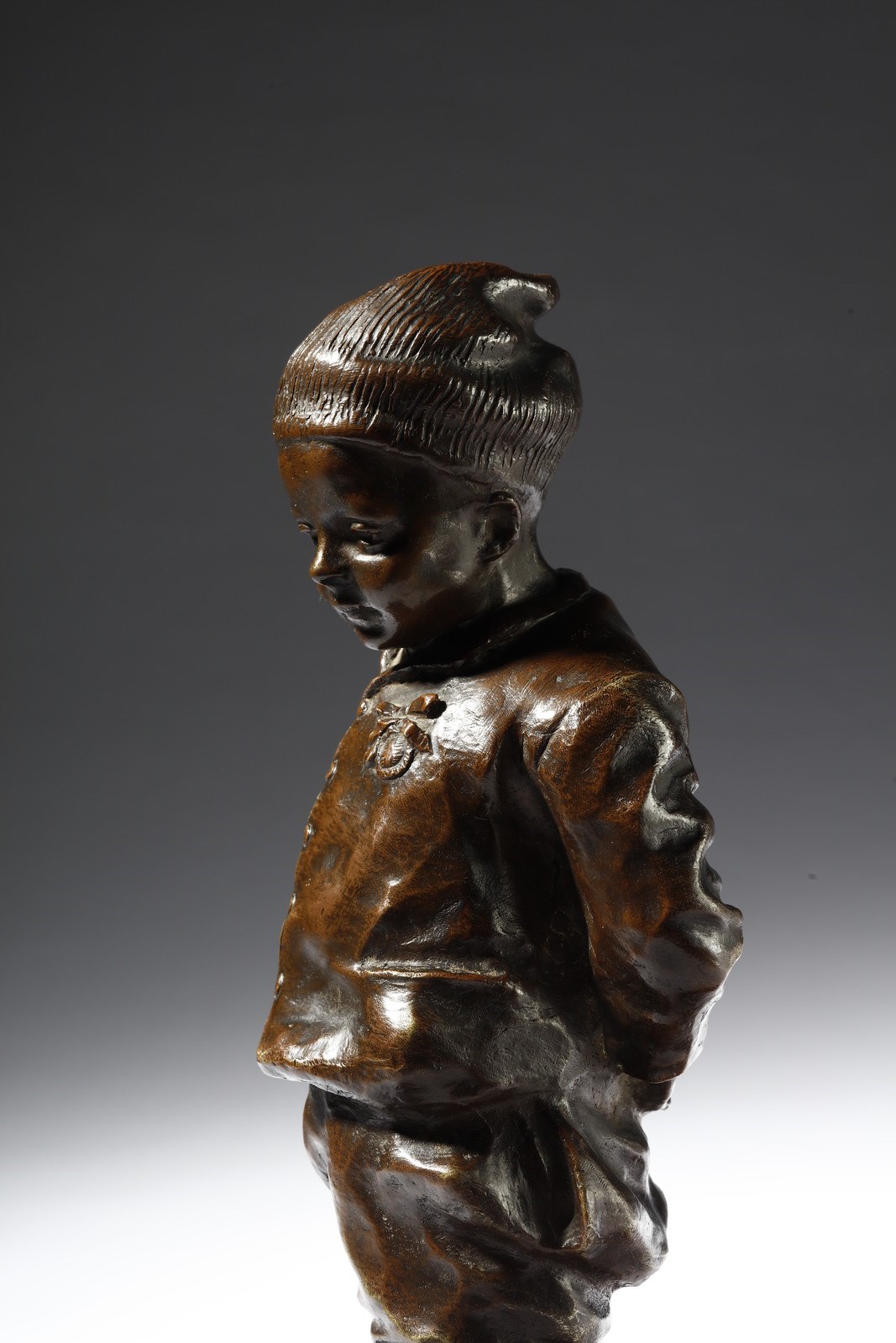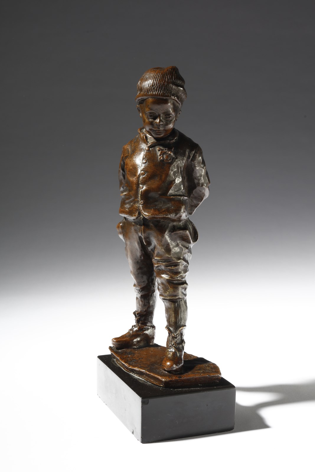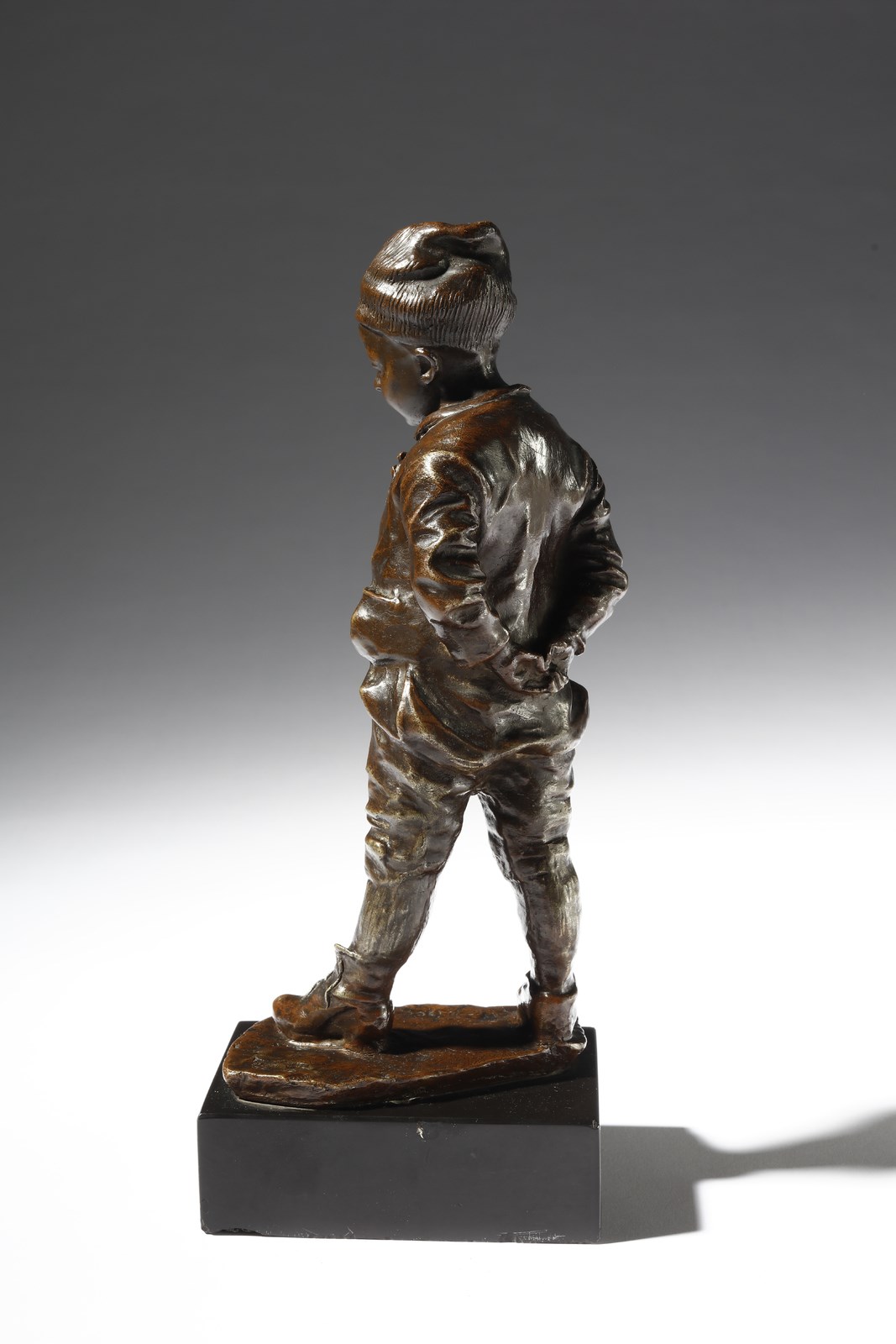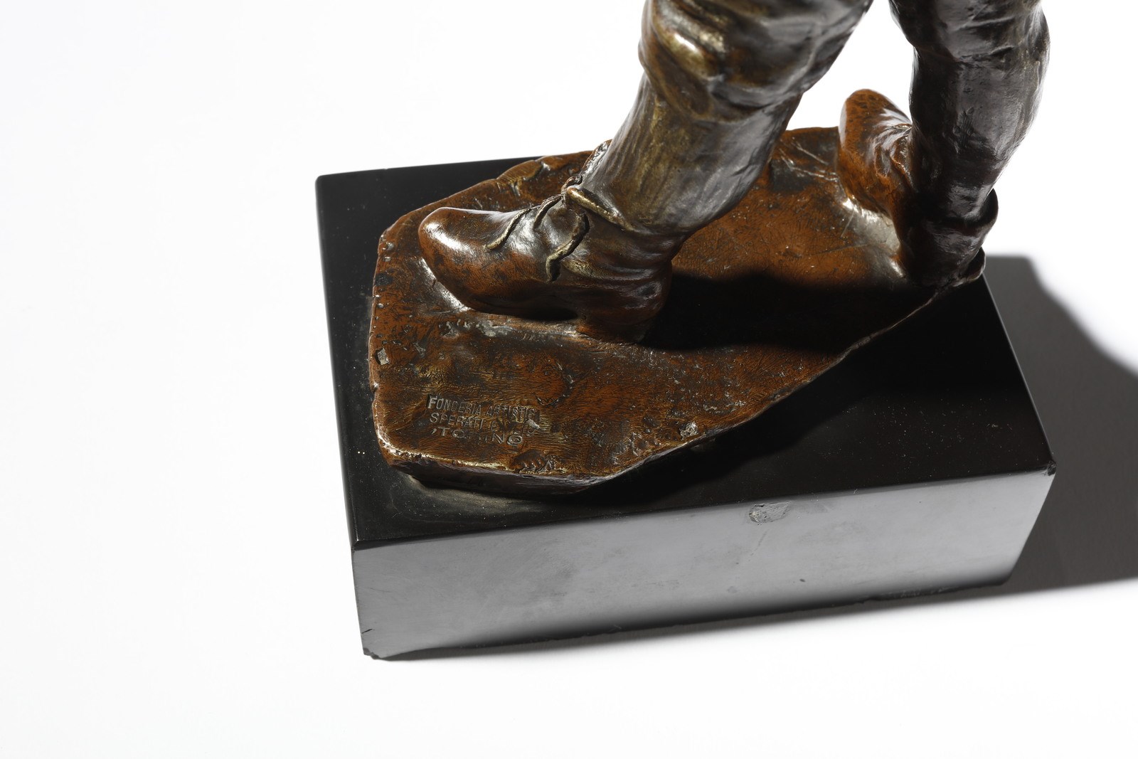 BISCARRA CESARE (1866 - 1943) Bambino. bronzo a patina bruna. Cm 13,00 x 32,00 x 8,70. Firma e marchio della fonderia sulla base. Misure del bronzo: 28 x 12 x 9 cm.