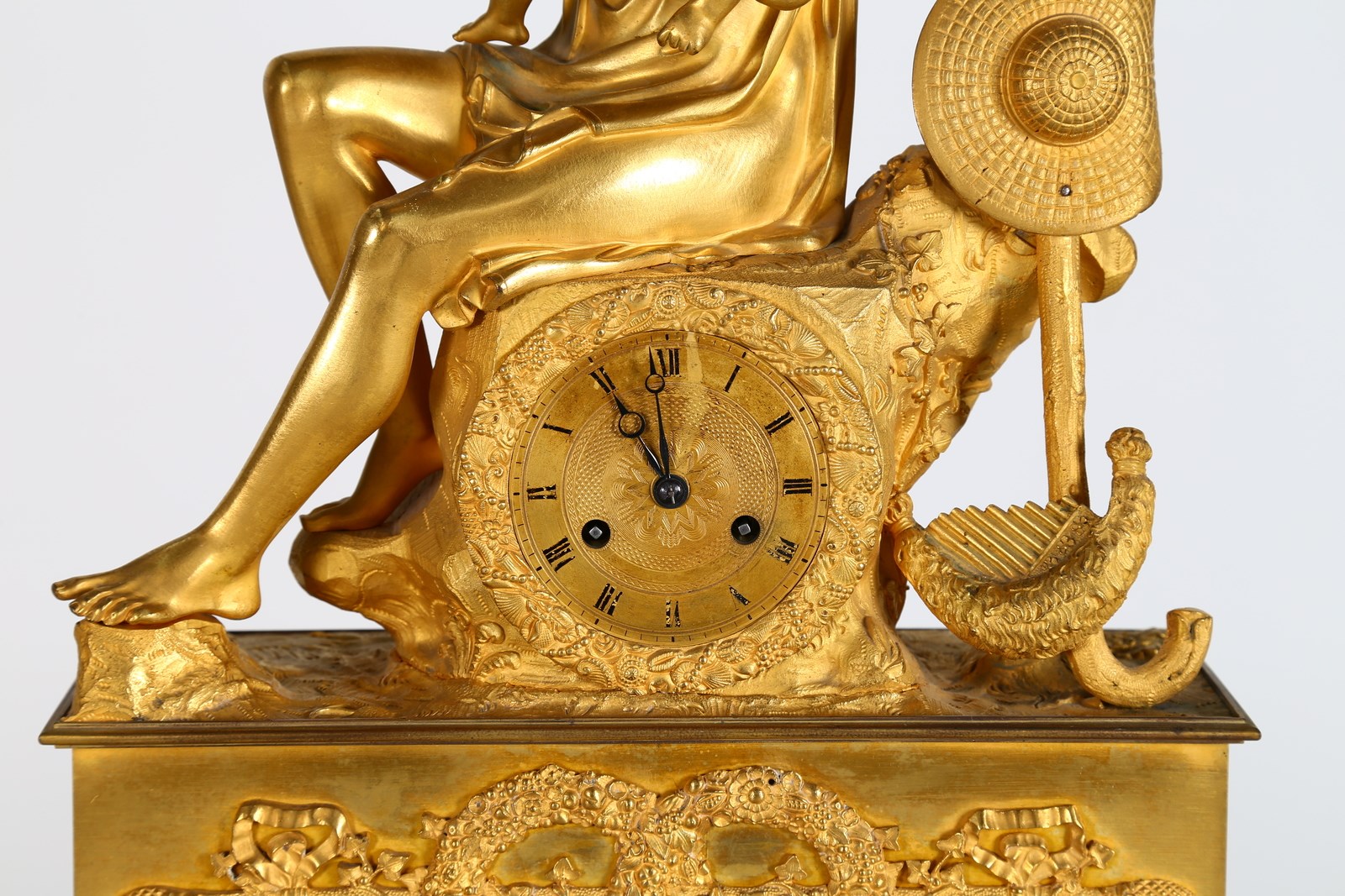 FRANCIA, XIX SECOLO - Pendola da tavolo in bronzo dorato, base decorata a motivi neoclassici, quadrante in bronzo dorato.