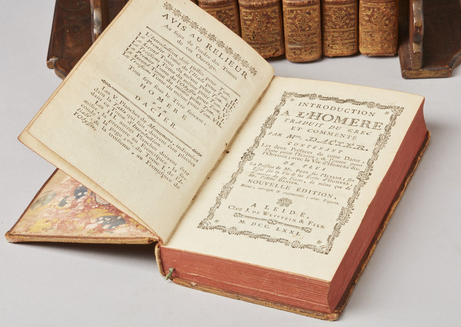 MANIFATTURA FRANCESE DEL XVIII SECOLO - Oeuvres d'Homére in sette volumi rilegati in pelle e datati 1771.