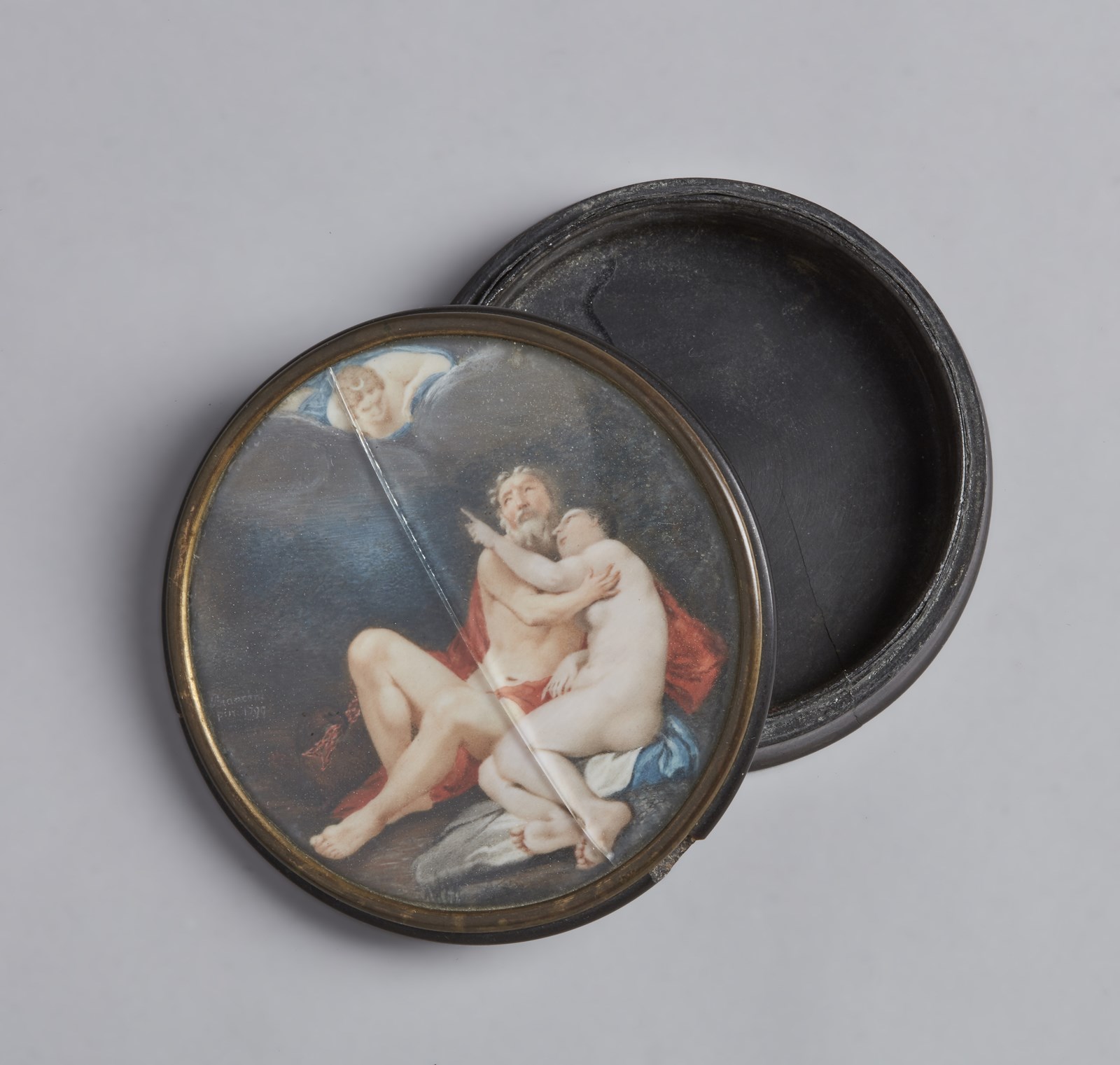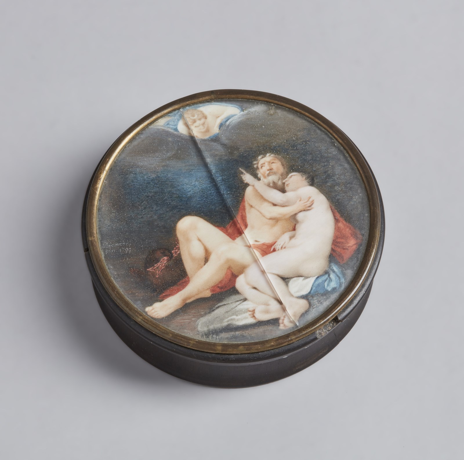 MANIFATTURA ITALIANA DELLA FINE DEL XVIII SECOLO - Tabacchiera con miniatura forse raffigurante Giove e Semele, firmata e datata 1799.