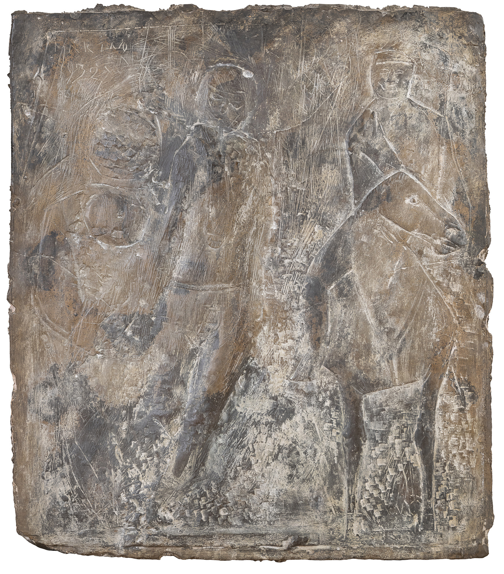 La particolarità di questa splendida opera di arte moderna, sta nel trasferire il concetto di disegno nel bassorilievo, operazione riuscita in pieno dal Maestro, iniziando così il suo rapporto compositivo tra cavallo e uomo.