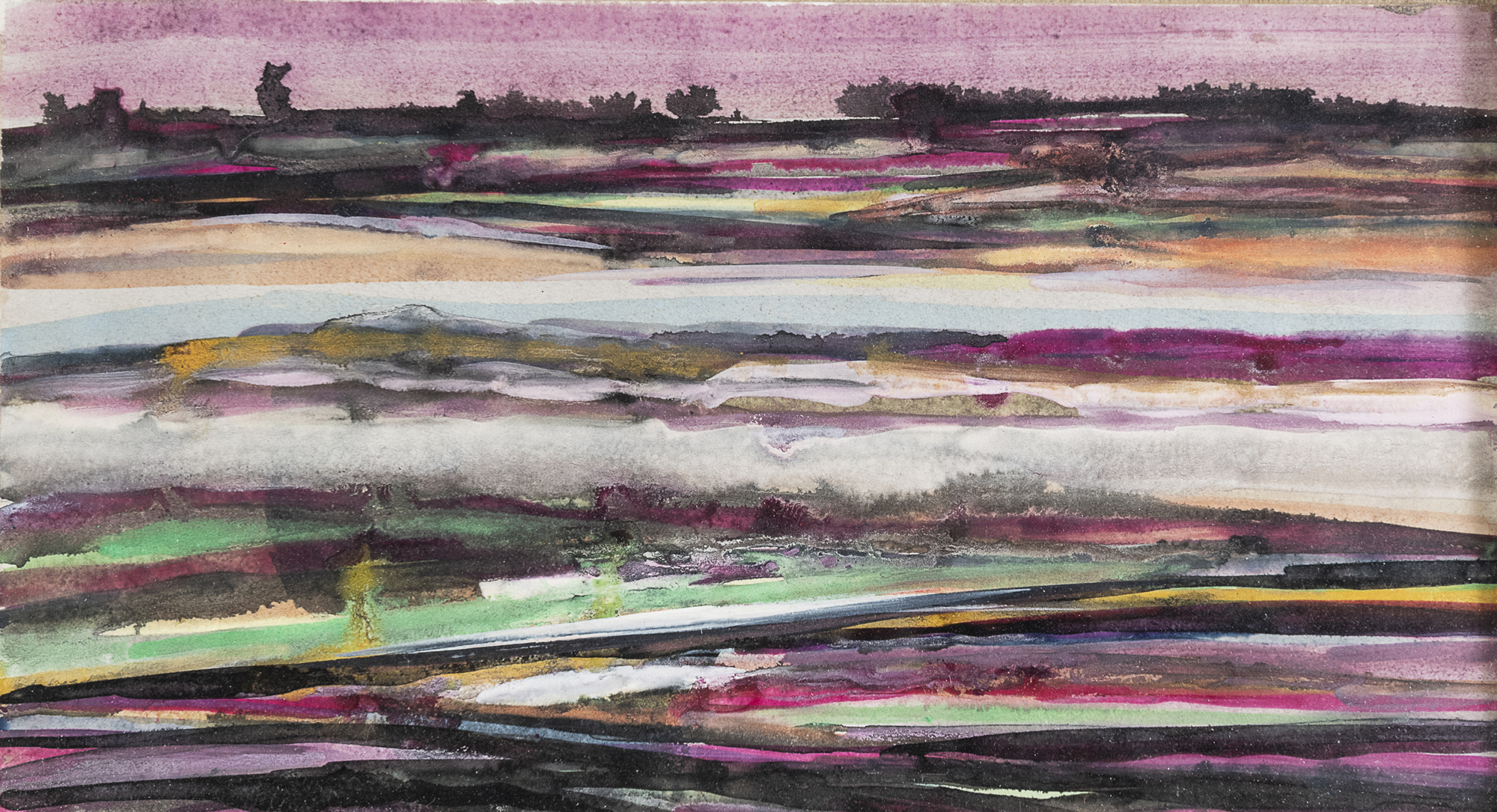 Tempera e acquerello su carta applicata su tela, cm. 20 x 37