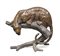 a patina brunita, raffigurante una tigre in posa di assalto su di un ramo.