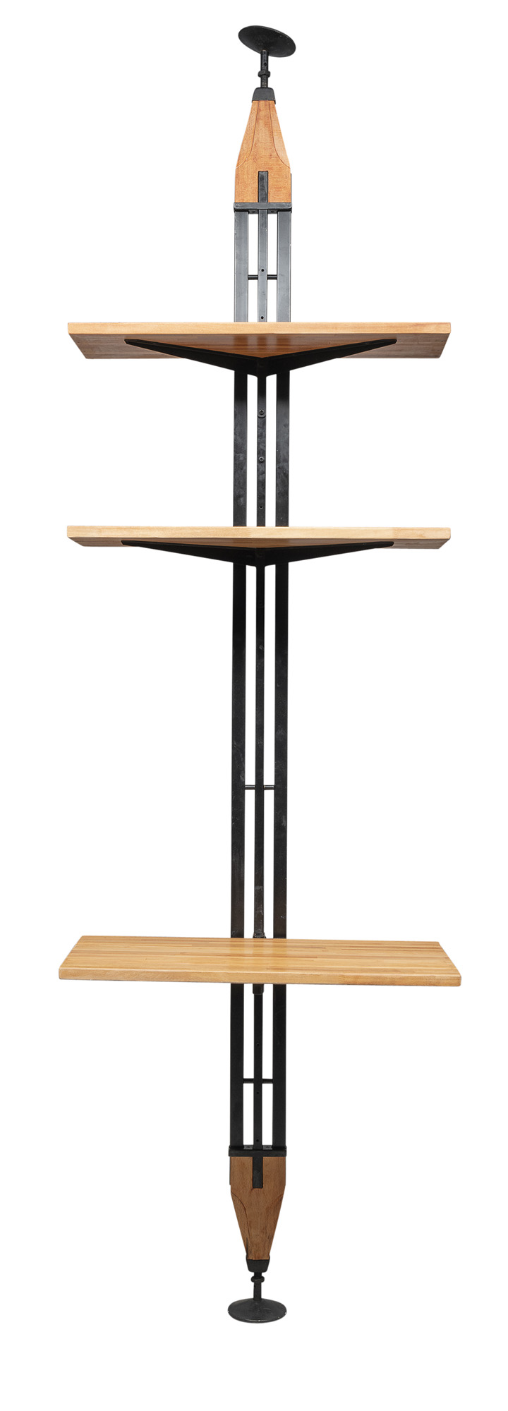 con montante cielo terra in metallo a lacca nera e legno. Tre ripiani a giorno anch'essi lignei.