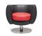 con struttura in legno, cuscini in gommapiuma rivestita in ecopelle nera con cuscino rosso. Base a disco girevole in metallo cromato.