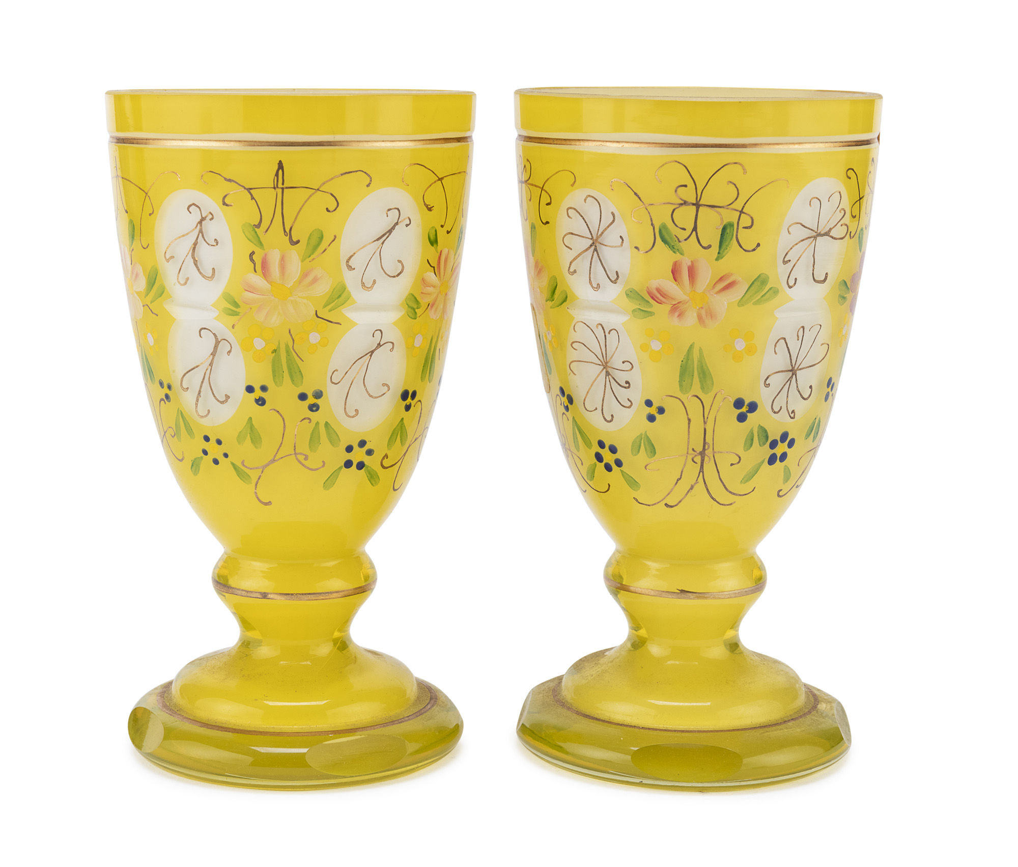 COPPIA DI BICCHIERI IN VETRO, BOEMIA INIZI XX SECOLO