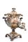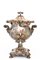 in sheffield, coperchio baccellato con presa modellata a fiore, corpo liscio con anse a volute ritorte, rubinetto anteriore con guarnizione in avorio, base quadrangolare su piedini a ricciolo
