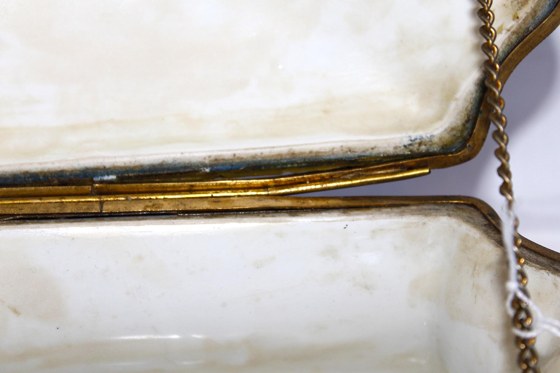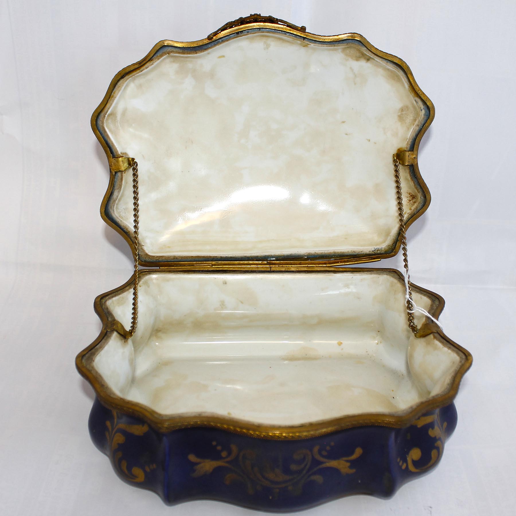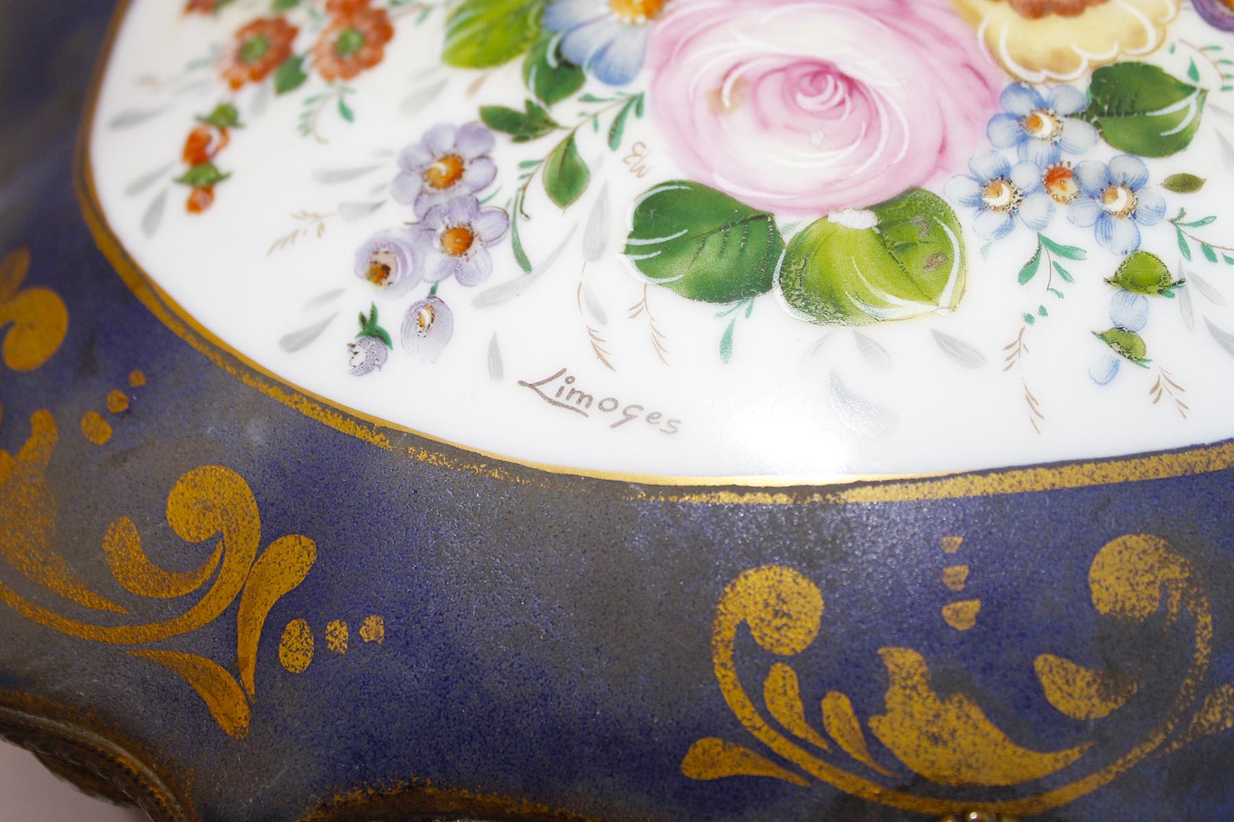 scatola in porcellana policroma dipinta a mano, con decori a motivi floreali entro riserva centrale, lumeggiature dorate