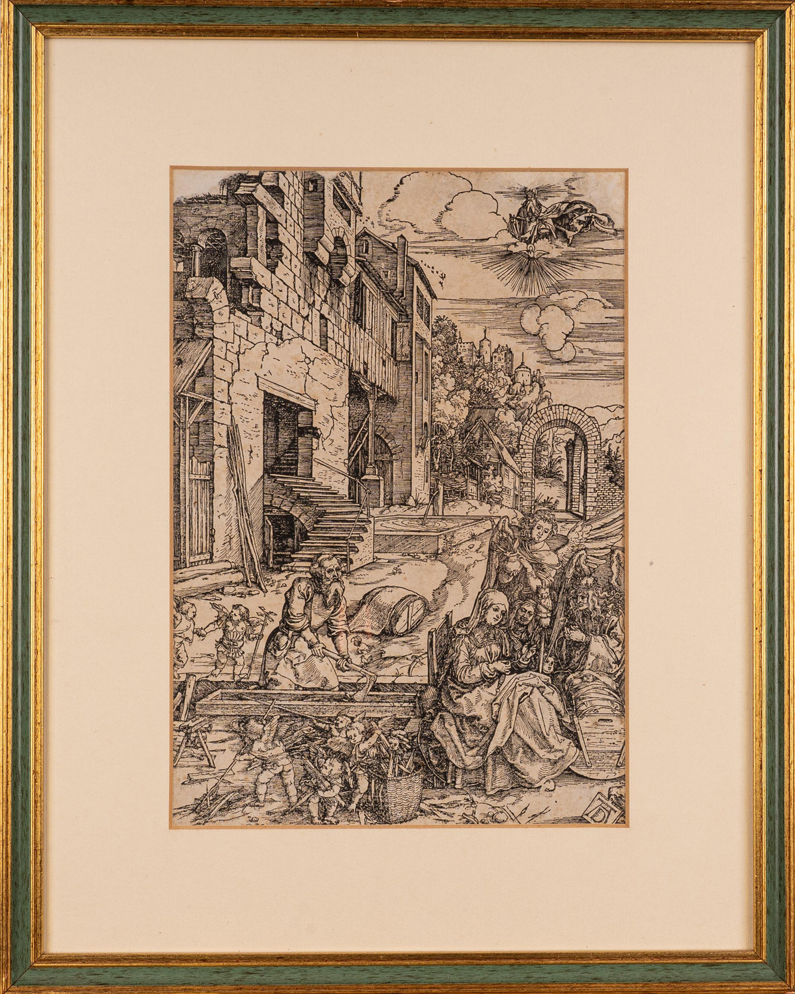 stampe su carta estratte dalla serie della 'Vita della Vergine' di Albrecht Dürer (Norimberga, 1471 - 1528), raffiguranti l'Adorazione dei pastori ed il Riposo durante la fuga in Egitto, entro cornici, piccoli difetti