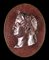 Coppia di grandi medaglioni a cameo in scagliola decorati ad imitazione del porfido, con profili degli imperatori Nerone e Traiano cm 42x32