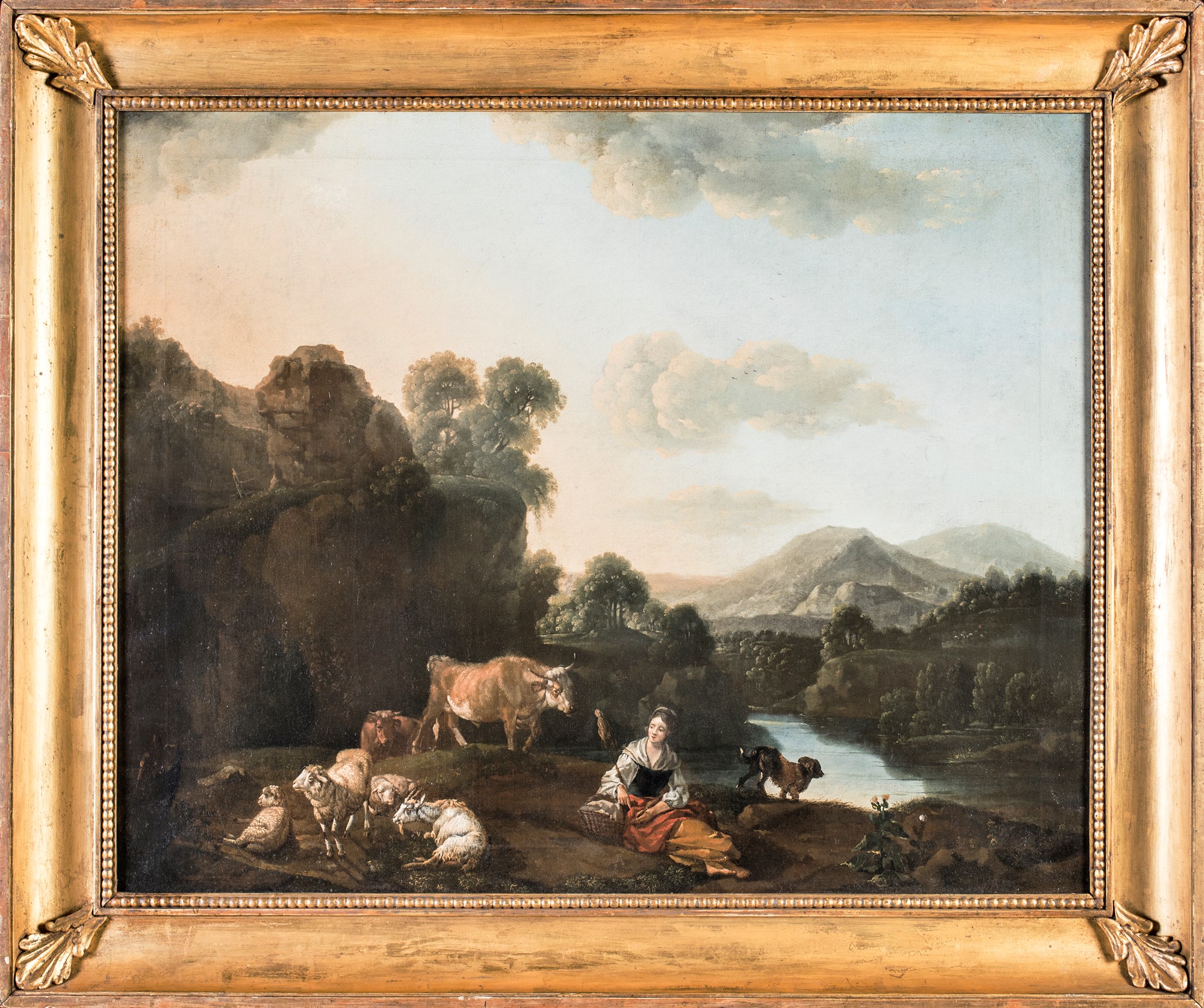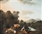 Scuola Romana del XVIII secolo Paesaggio con pastorella e armenti olio su...