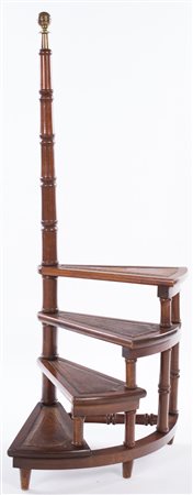 Scaletta da libreria in noce con quattro gradini a chiocciola e montante...