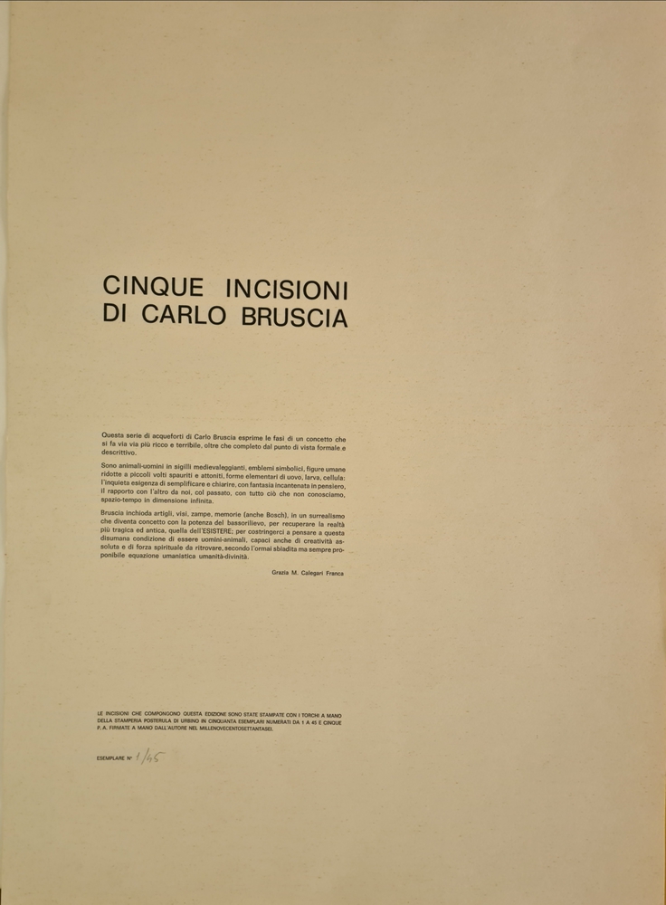 Bruscia Carlo - Cinque incisioni di Carlo Bruscia, 1976