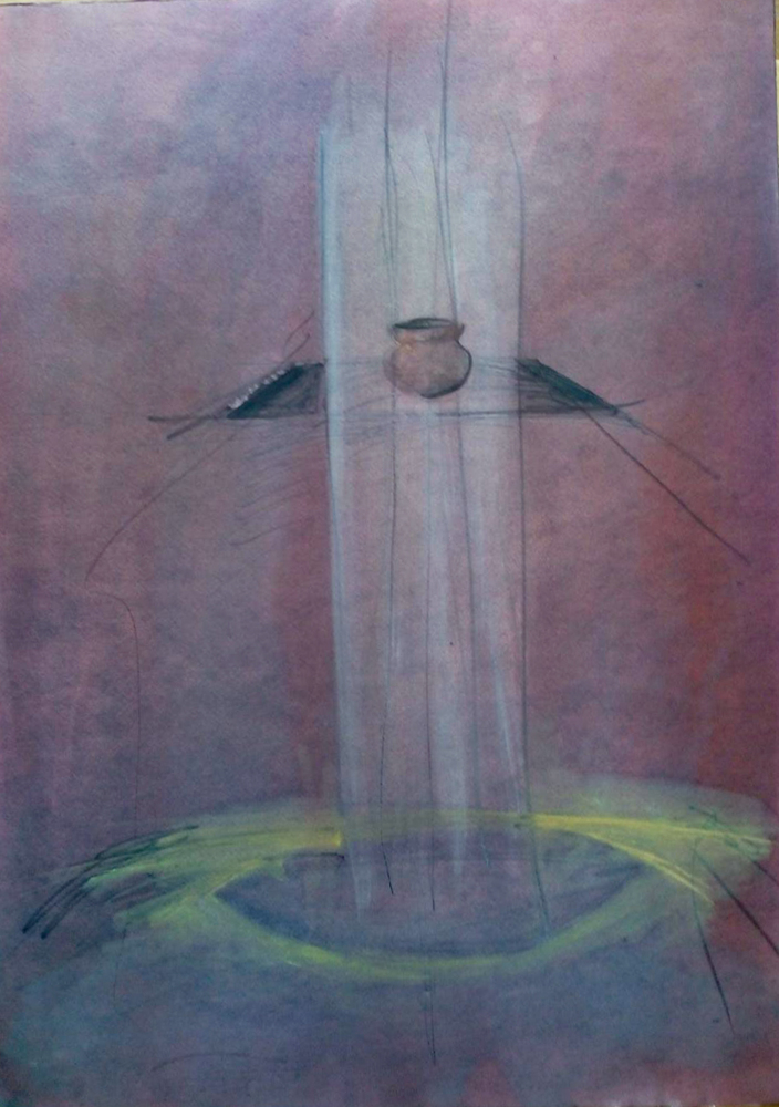Tecnica mista su tavola 50x70 cm, firma e dati al retro.