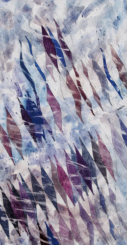 ENRICO SIRELLO Livorno 1930 - Livorno 26/02/2012 Evanescente, 2000 tempera su tela cm. 100x50, firma sulla destra, titolo, firma e tecnica al retro, opera priva di cornice.