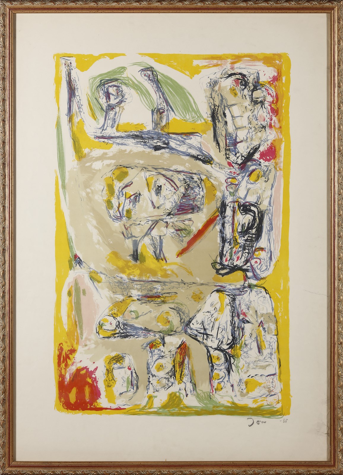 JORN ASGER (1914 - 1973) Les suedoises s'amusent. 1955. Litografia. Cm 60,00 x 84,00. Non presenta tiratura. Firma e anno in basso a destra. Difetti. Provenienza: Galerie Rive Gauche, Rue Fleurus n.44, Parigi.