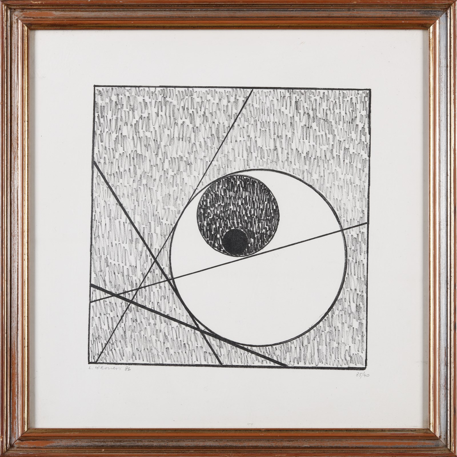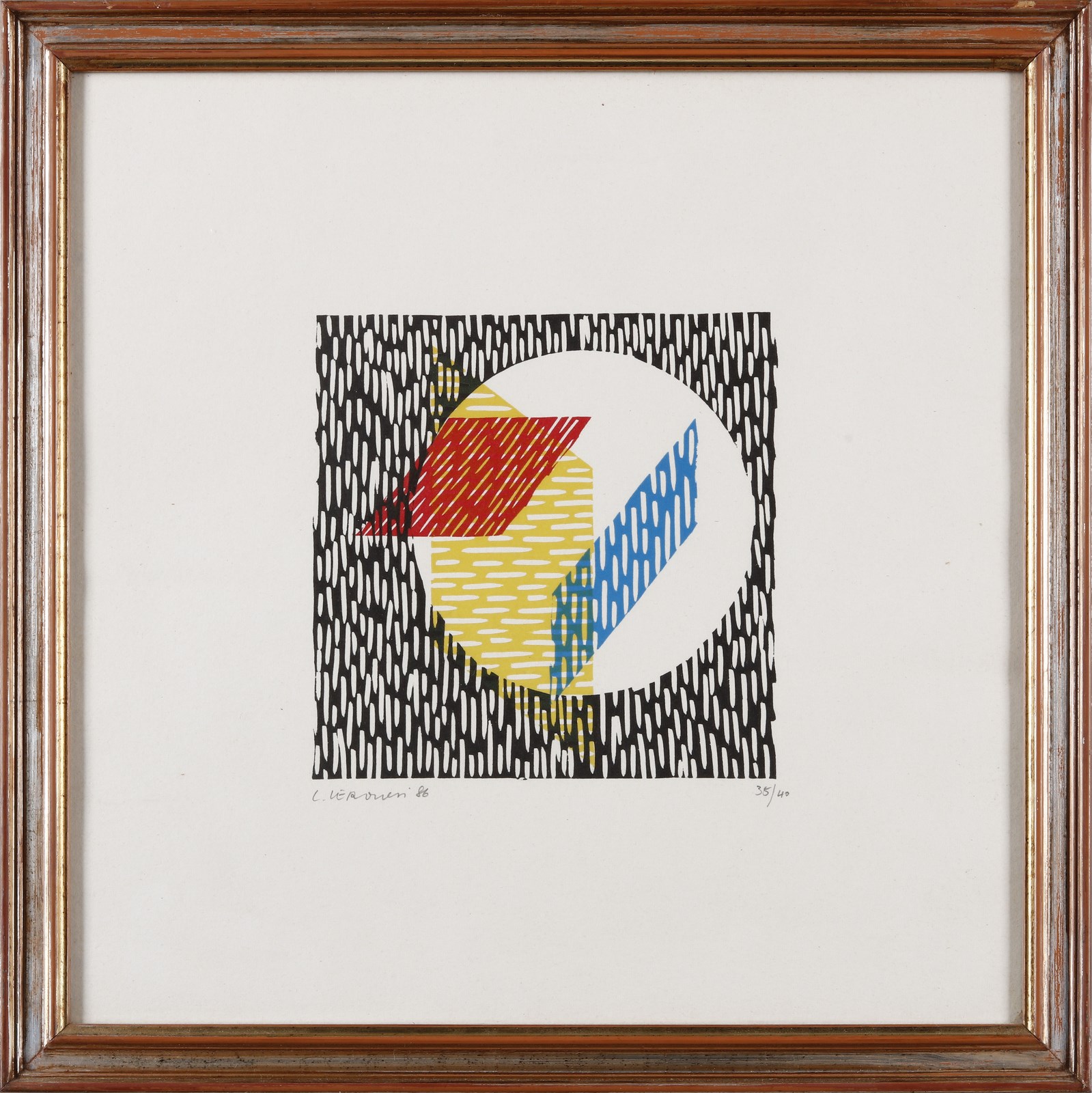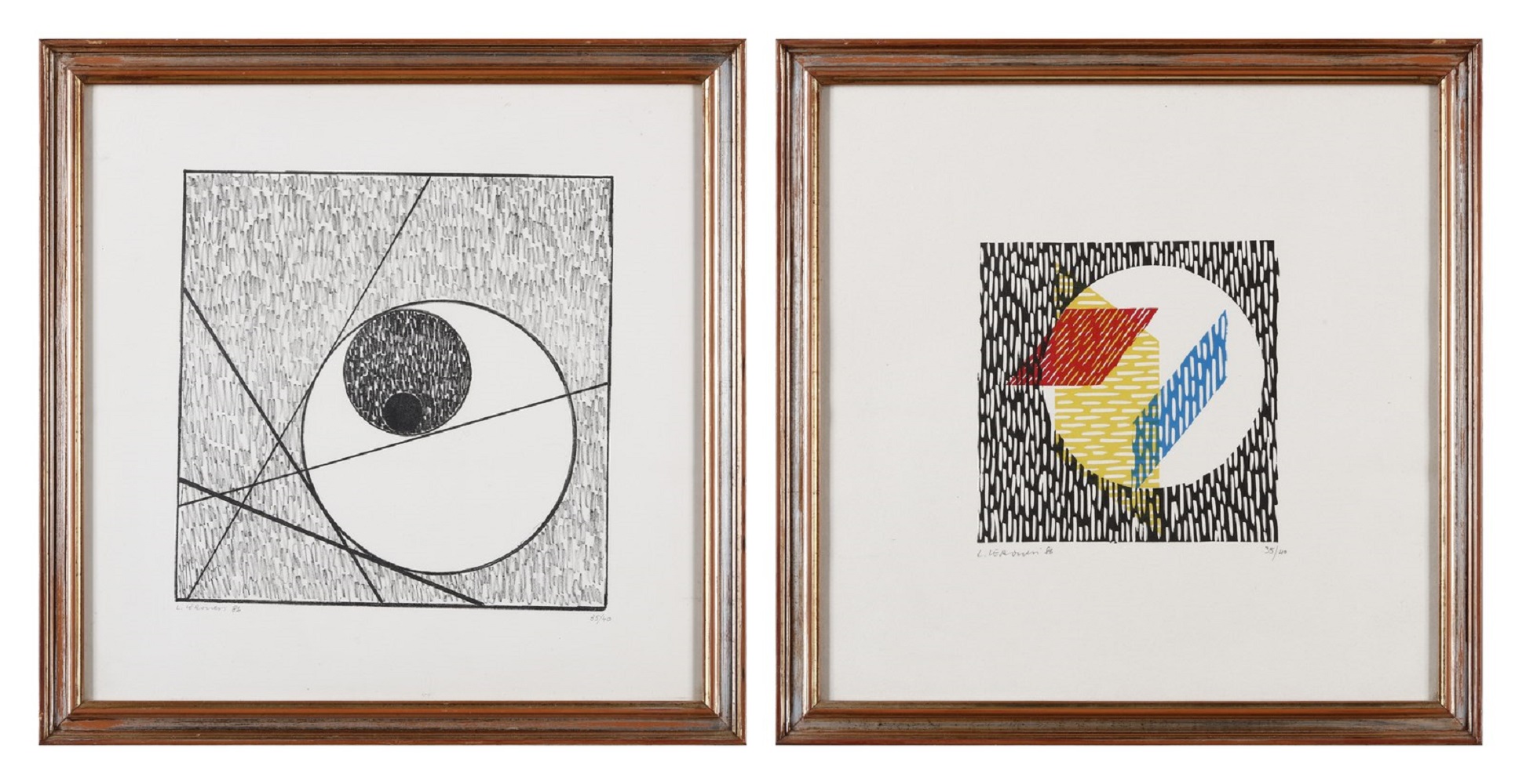 VERONESI LUIGI (1908 - 1998) Lotto composto da n.2 fogli. Senza titolo. 1986. Litografia. Cm 29,00 x 29,00. 35/40. Tiratura, firma e anno in basso a matita. Cornice presente