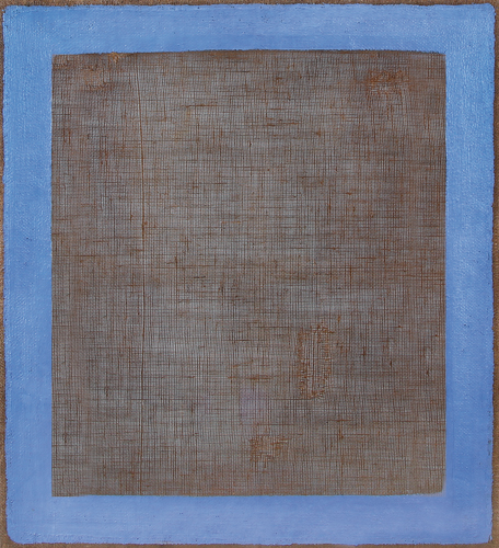 SALVATORE EMBLEMA Terzigno (Na) 25/04/1929 - Terzigno (Na) 02/02/2006 Senza titolo, (1969) olio su tela grezza cm. 100x90, firma poco leggibile al retro, dichiarazione d'autenticità della ArteTivù allegato, opera registrata presso Museo Emblema - Archivio fotografico delle opere coma da dichiarazione su fotografia allegata.
