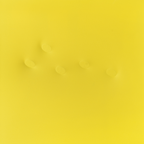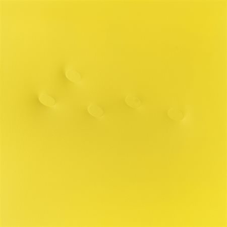 TURI SIMETI Alcamo 05/08/1929 Cinque ovali gialli, 2003 acrilico su tela sagomata cm. 80x80, firma e anno al retro, pubblicato su "Turi Simeti, catalogo Generale" volume II, Arch. 004514 Christian Maretti Editore, pagina 164.