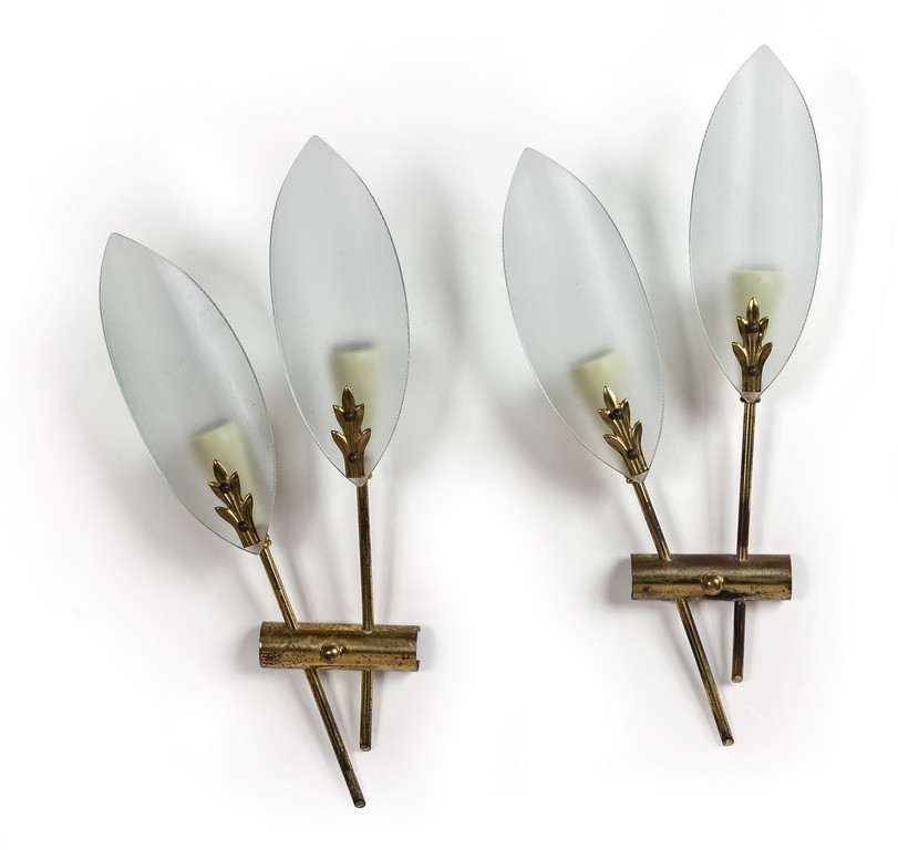 Lotto 3053 | DUE LAMPADE DA PARETE, anni "50. <br>Ottone,